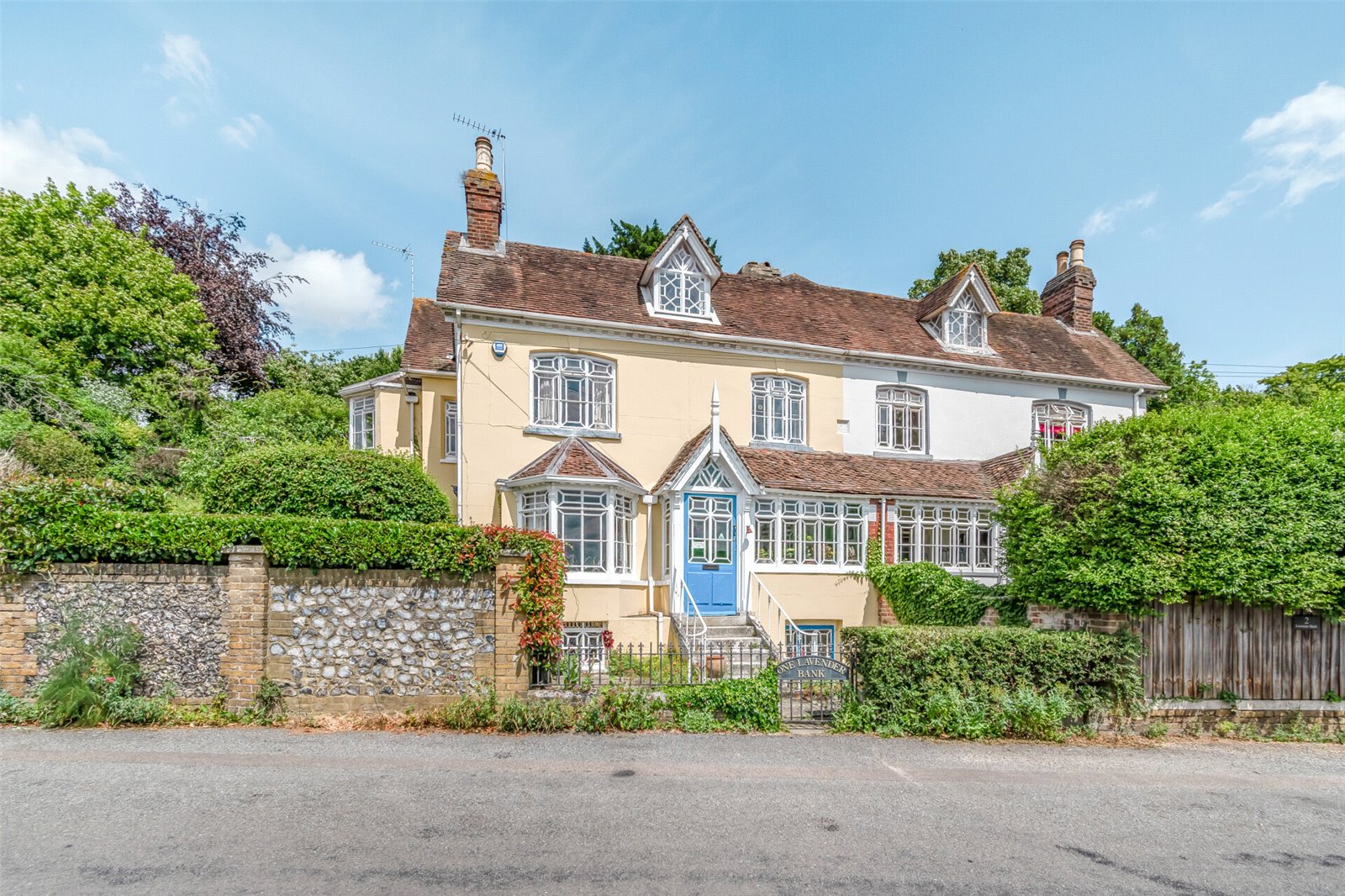 One Lavender Bank is a spacious period family home and is one of two 300 year-old bay fronted properties. It has a date plaque of 1722 with the initials I.S and T.S which apparently relate to twin daughters of the local Lavender Farm that the properties were built for. This Grade II Listed four-storey home sits in a plot of around 0.14 of an acre and the accommodation comprises to the ground floor of entrance porch and hall, two reception rooms, split level kitchen dining room, utility room and shower room, five bedrooms, bathroom and separate WC over the first and second floors. There is also a three-room cellar. Outside, the front garden offers, paved entrance with access to main house and cellar and to the side is a shingle driveway with space for several vehicles and is surrounded by mature planted borders. The side garden offers a high degree of privacy with steps to an elevated lawn area with further planted borders with seating and impressive views of the local countryside and access to a store. This charming period character home needing some cosmetic attention is now looking for a new family to make it its own.