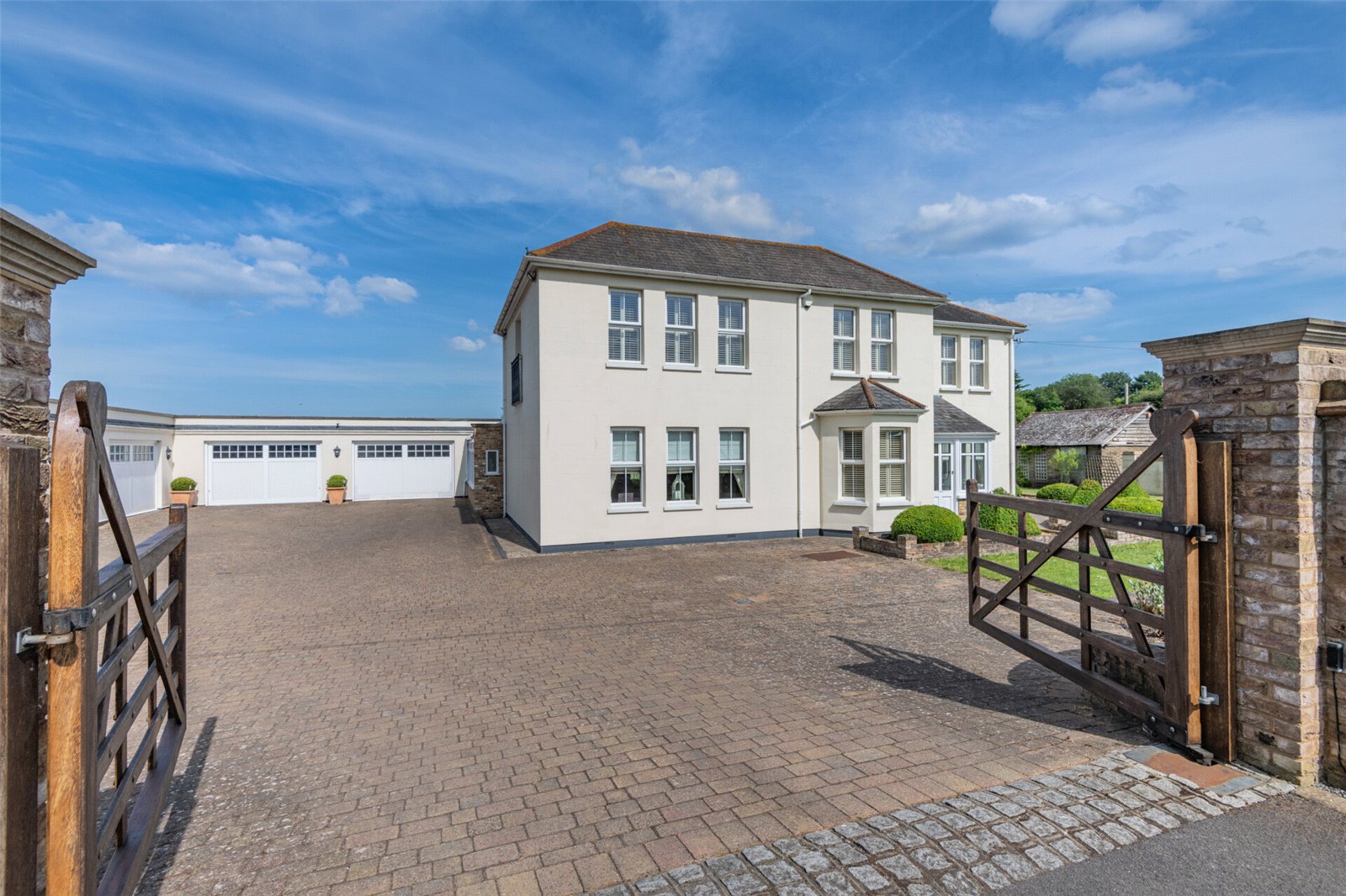 Parking Gated entrance with electric gates to the drive leading to a further set of electric gates & a block paved parking area for multiple vehicles.