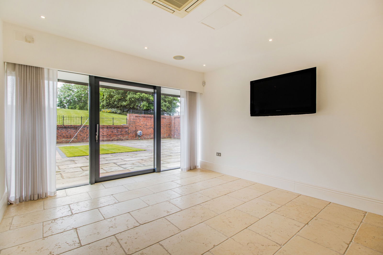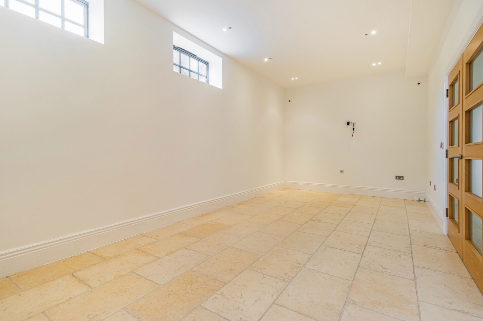 Twin doors from the hallway gain access to a versatile room, planned as a home cinema, with two top light frosted windows, inset lighting to the walls and a Limestone laid floor.