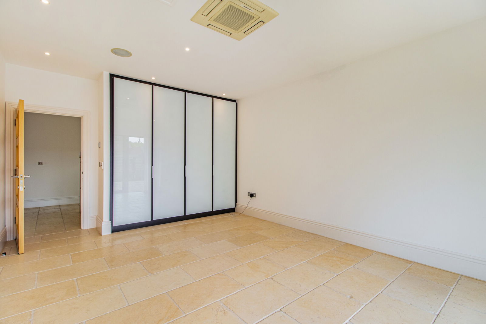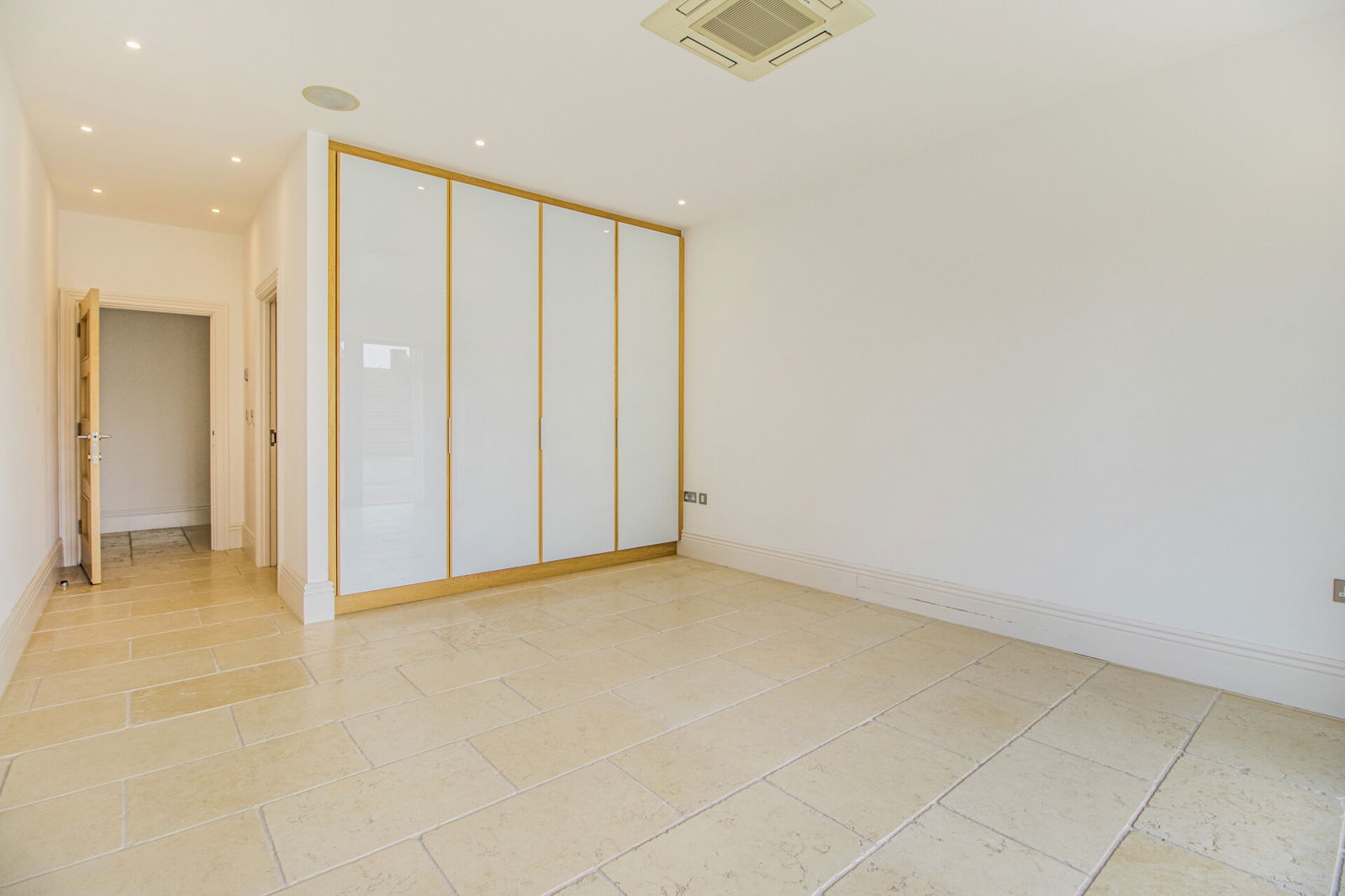 The principal bedroom suite offers exceptionally well-proportioned accommodation, has a limestone tiled floor, a bank of full height glazed windows to the rear opening directly into the sunken courtyard, and fitted bedroom furniture including a shelved area with a concealed sliding door opens to a secure cupboard. A walk-in dressing room has a limestone tiled floor, hanging and shelving to the expanse of all walls, whilst a central island houses a concealed storage facility. The adjoining bathroom has limestone tiling to the floor, ceramic tiling o the walls, an opaque window, a walk-in wet-room style shower with a fixed glass screen, twin wash hand basins, a bidet and a low flush W.C.