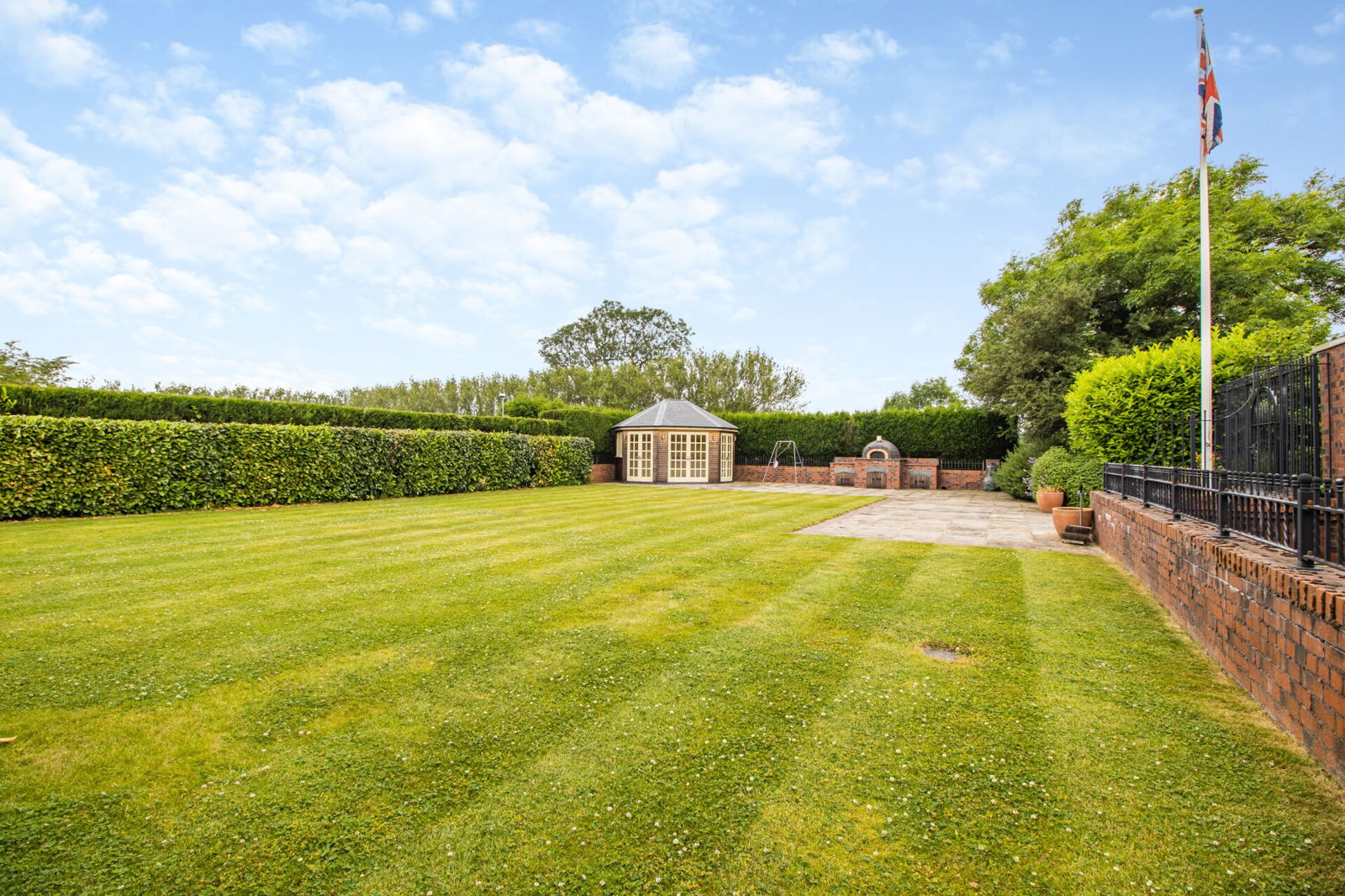 A sunken courtyard has bene professionally landscaped creating a sheltered seating area directly off the bedroom accommodation. An architecturally designed stone staircase with inset lighting, leads up to the rear gardens. To the west aspect enclosed within a hedged border is a lawned garden, with a patio, a summer house and purpose-built pizza oven ideal for summer entertaining. The remainder of the grounds are laid to lawn and have a variation of flower, tree and shrubbed borders, privately enveloping the property ensuring privacy and seclusion to all aspects of the grounds. A secondary access opens to an enclosed compound which is home to the LPG tank, offers secure parking for machinery and gains access to the garage, double garage and store.