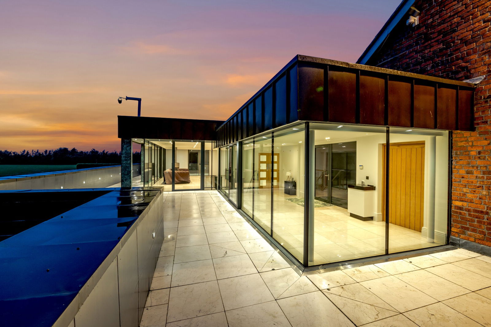 Coltsworth House presents a unique, bespoke design, the architectural journey begins with a glass walled reception area that links the original late 19th century building with contemporary, energy efficient living, drawing the eye to overlook landscape gardens at the rear and stunning open countryside beyond.