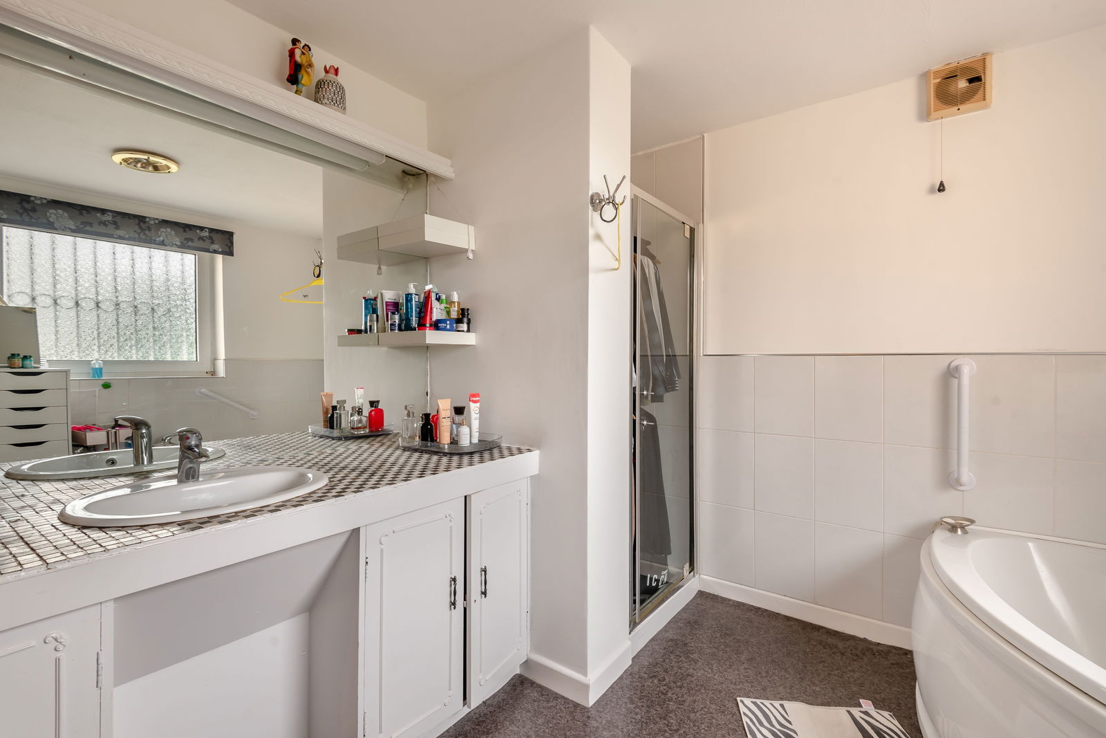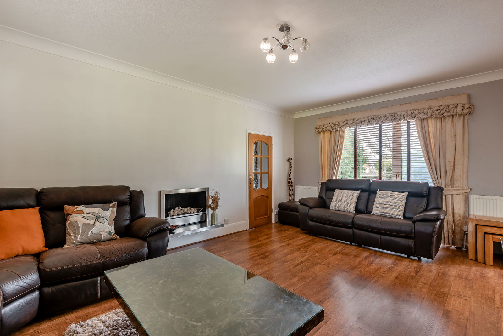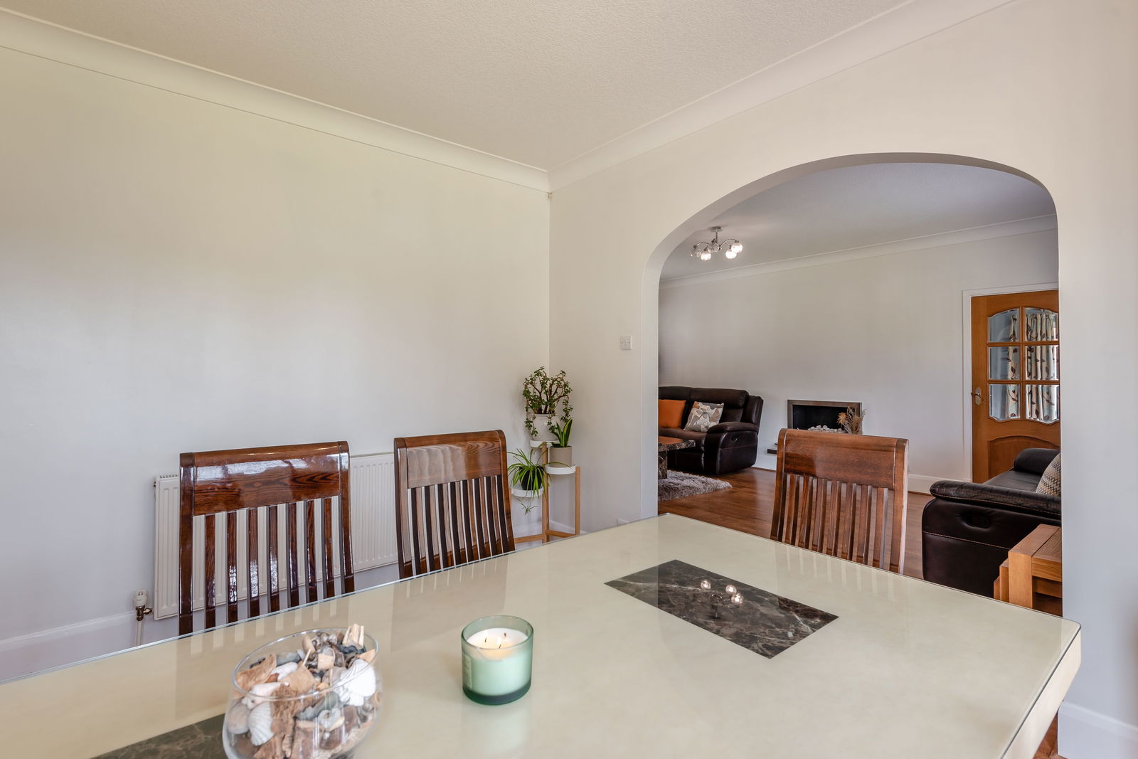 The stairs are carpeted, and a large window brightens up the staircase and landing area. There are a total of four double bedrooms in all and a storage cupboard. Immediately to the left is the family bathroom which is fully tiled in a modern stone colour and consists of a large shower and a chrome towel radiator. The principal bedroom has built-in storage and en suite facilities. This large en-suite has a bath and a separate shower with windows overlooking the front and rear aspect. Bedroom two is a large double room with carpet flooring, a rear aspect window and fitted wardrobes. Bedroom three is also a large double room overlooking the rear, with carpet flooring and a large radiator. The fourth bedroom is a small double room, currently housing a king-size bed and a desk. This room has laminate flooring, and a radiator and looks over the front garden.