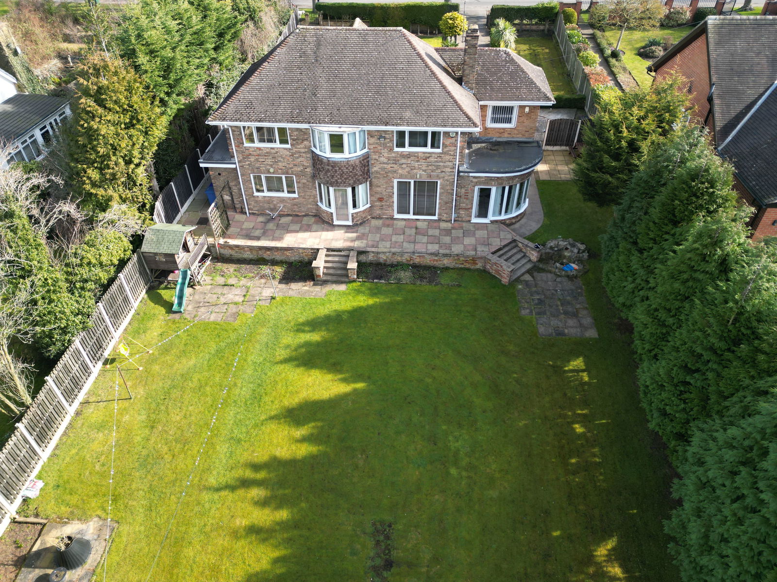 Externally the property offers parking for several vehicles along with a long garden which provides a great outside space and privacy from the road. To the rear is another long private garden flanked with mature trees and planting. Most areas are laid to lawn as well as expansive patio areas ideal for alfresco dining. With privacy hedging all around, it provides the ideal space to entertain guests with plenty of seating areas while the children play in the wide-open spaces.