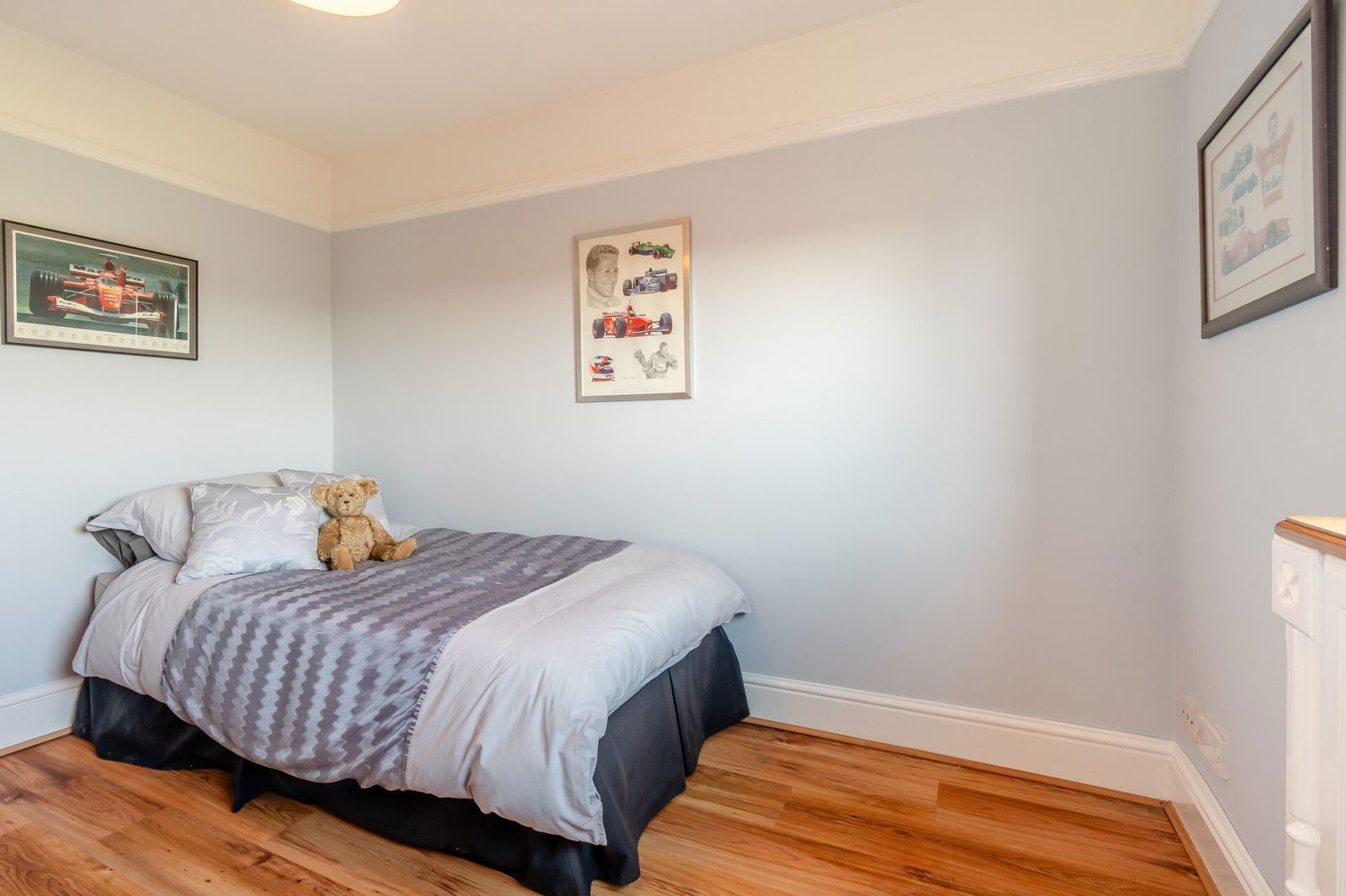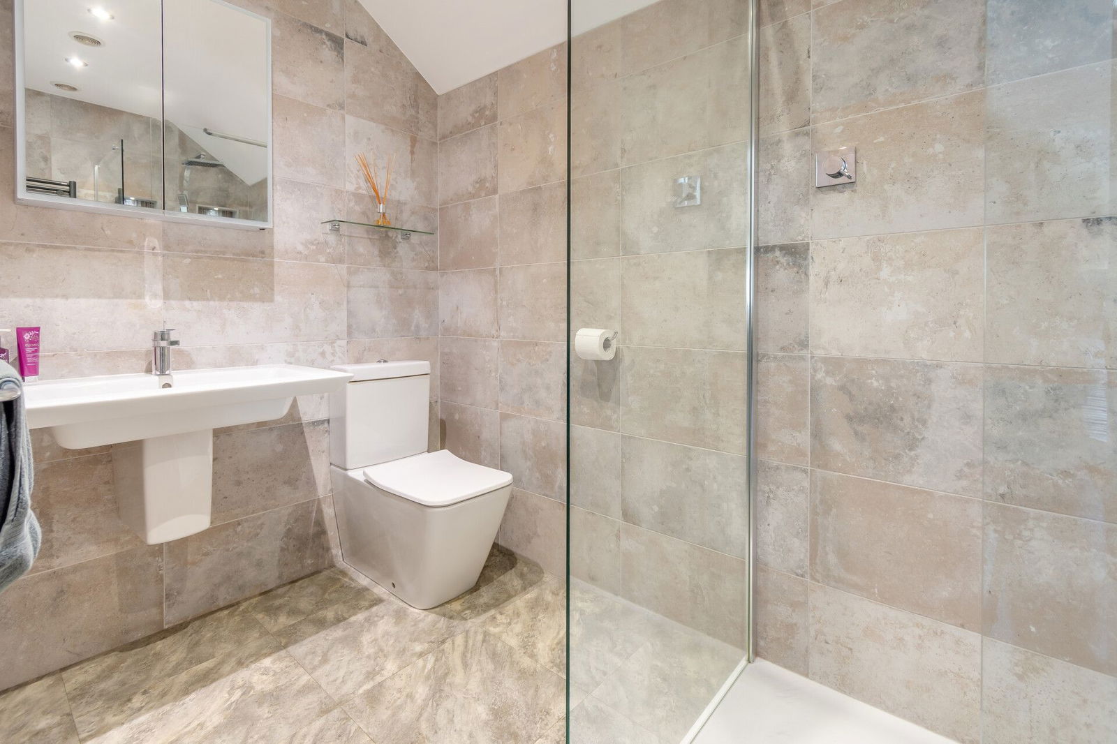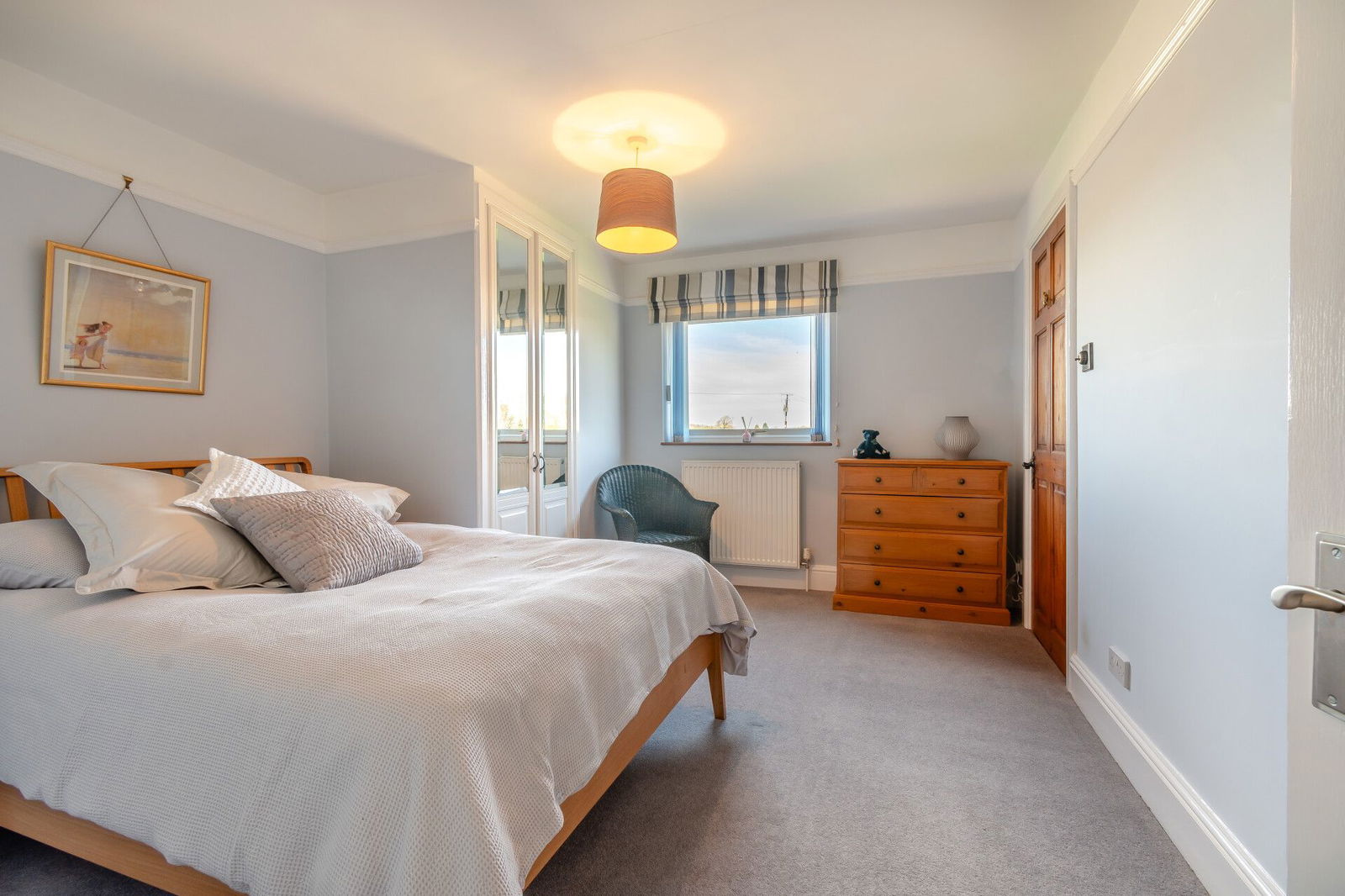The principal bedroom suite is positioned to the rear of the home and is exceptional from all viewpoints; a generous bedroom with windows to three aspect commanding stunning views over the gardens and surrounding countryside. There are fitted wardrobes, a dressing area and en-suite accommodation incorporating a low flush W.C, a wall hung wash hand basin and a shower with a fixed glass screen, all complemented by feature tiling and a vertical radiator.