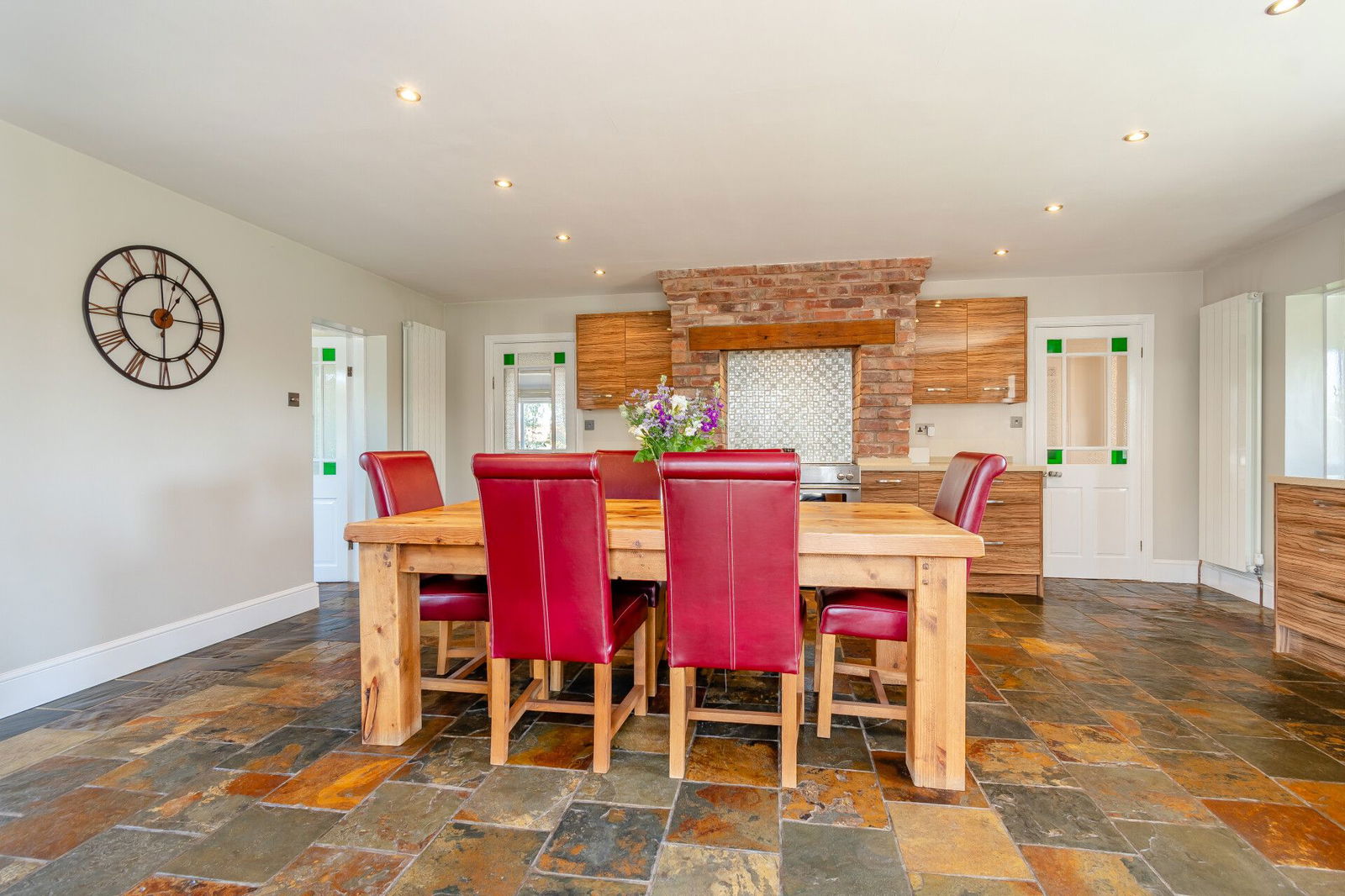The lounge offers generous accommodation and enjoys a double aspect position with windows to both the front and side elevations; a stunning room with an oak floor and a rustic brick chimney breast which is home to a wood burning stove.