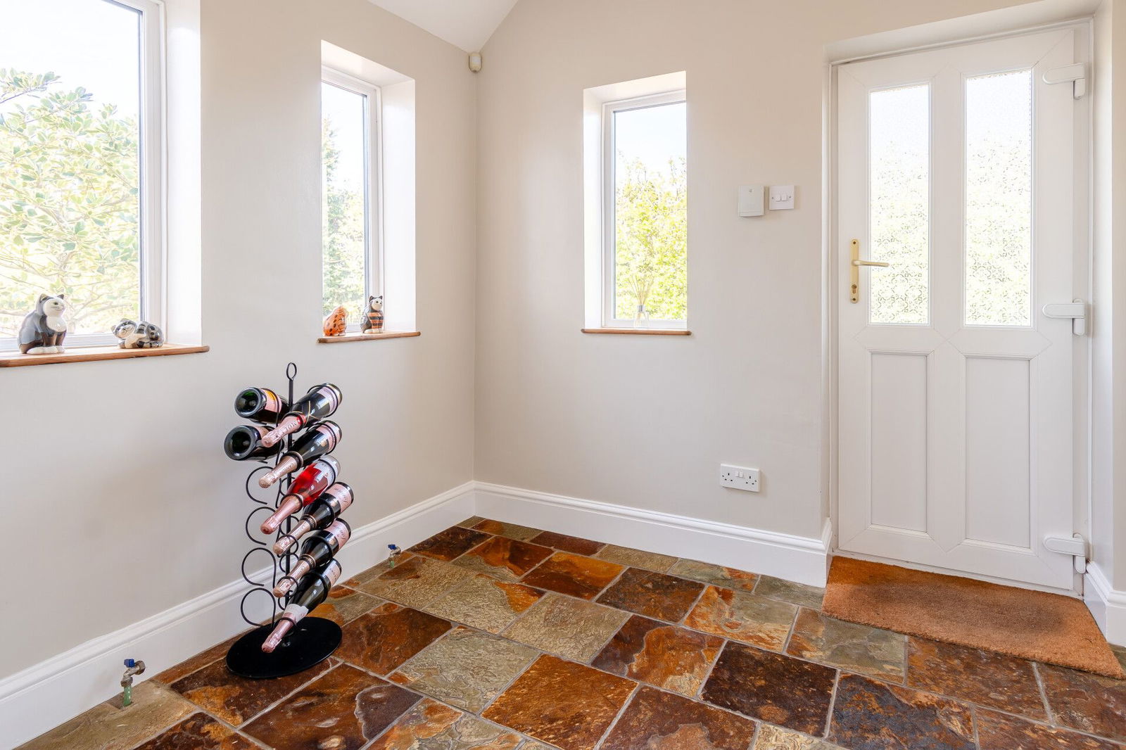 A boot room to the opposite side of the kitchen has a bank of useful storage cupboards to one wall, three window and an external door to the side aspect of the home.
