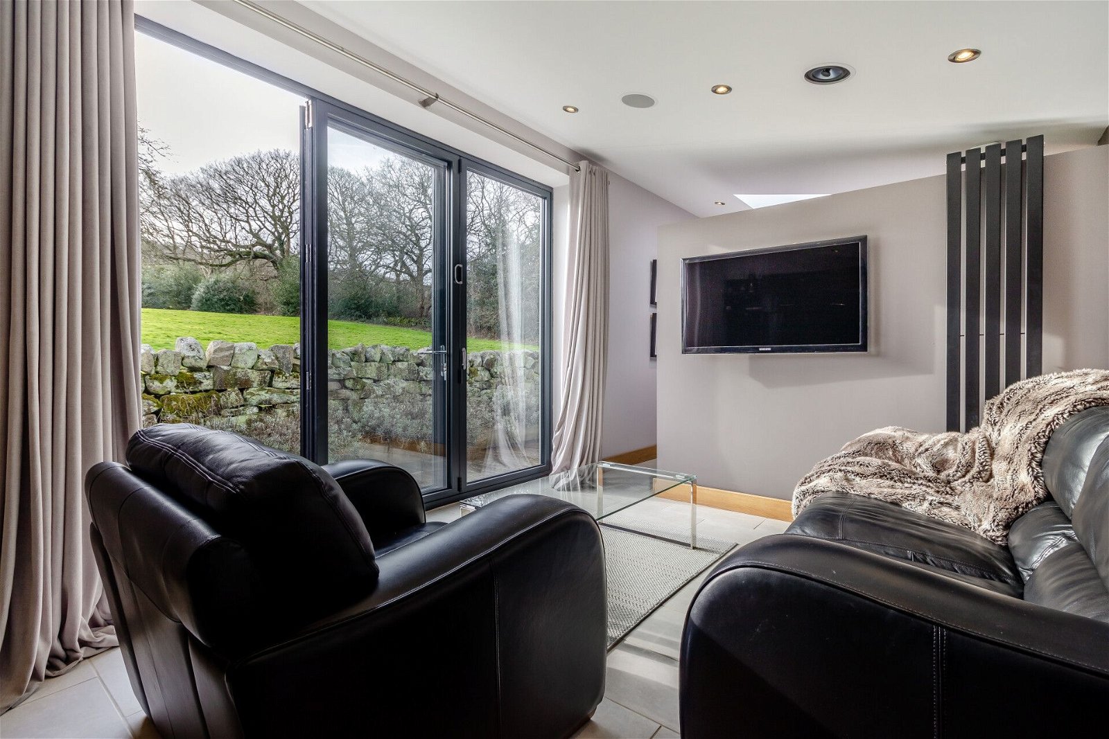 The garden room is positioned to the front of the property overlooking the courtyard with windows to two aspects enjoying a delightful outlook over the grassland to the side and across the valley towards Bolsterstone before leading through to the snug.