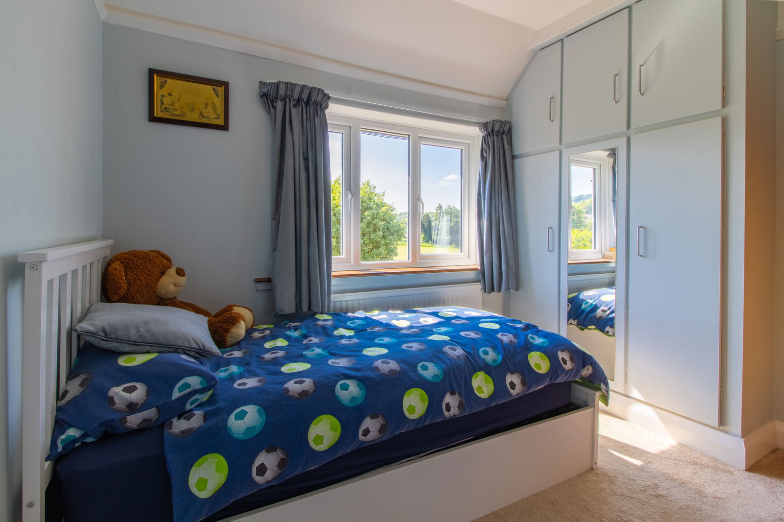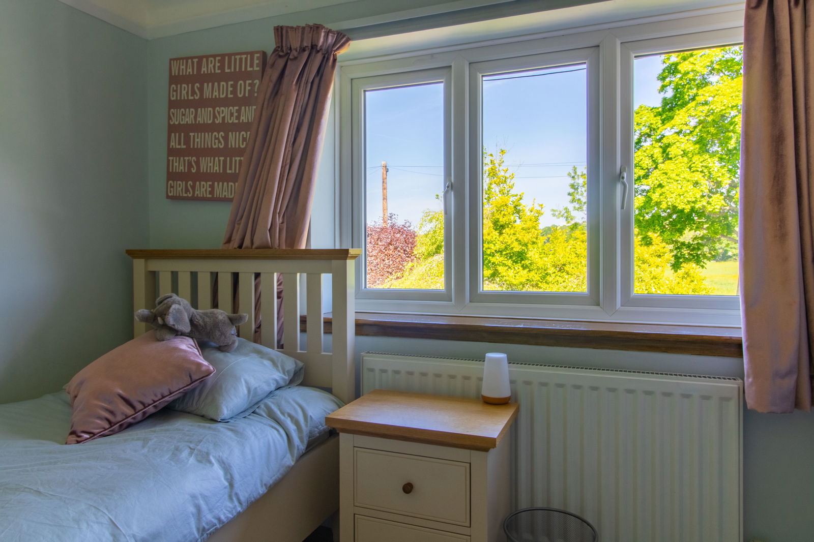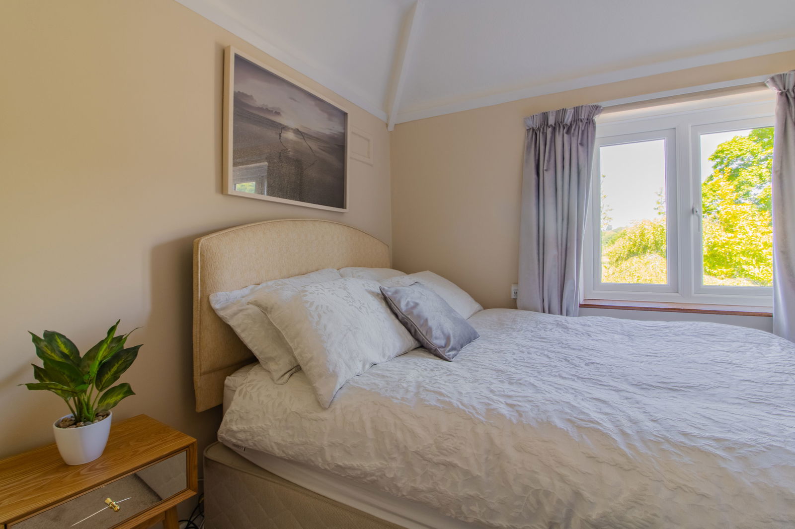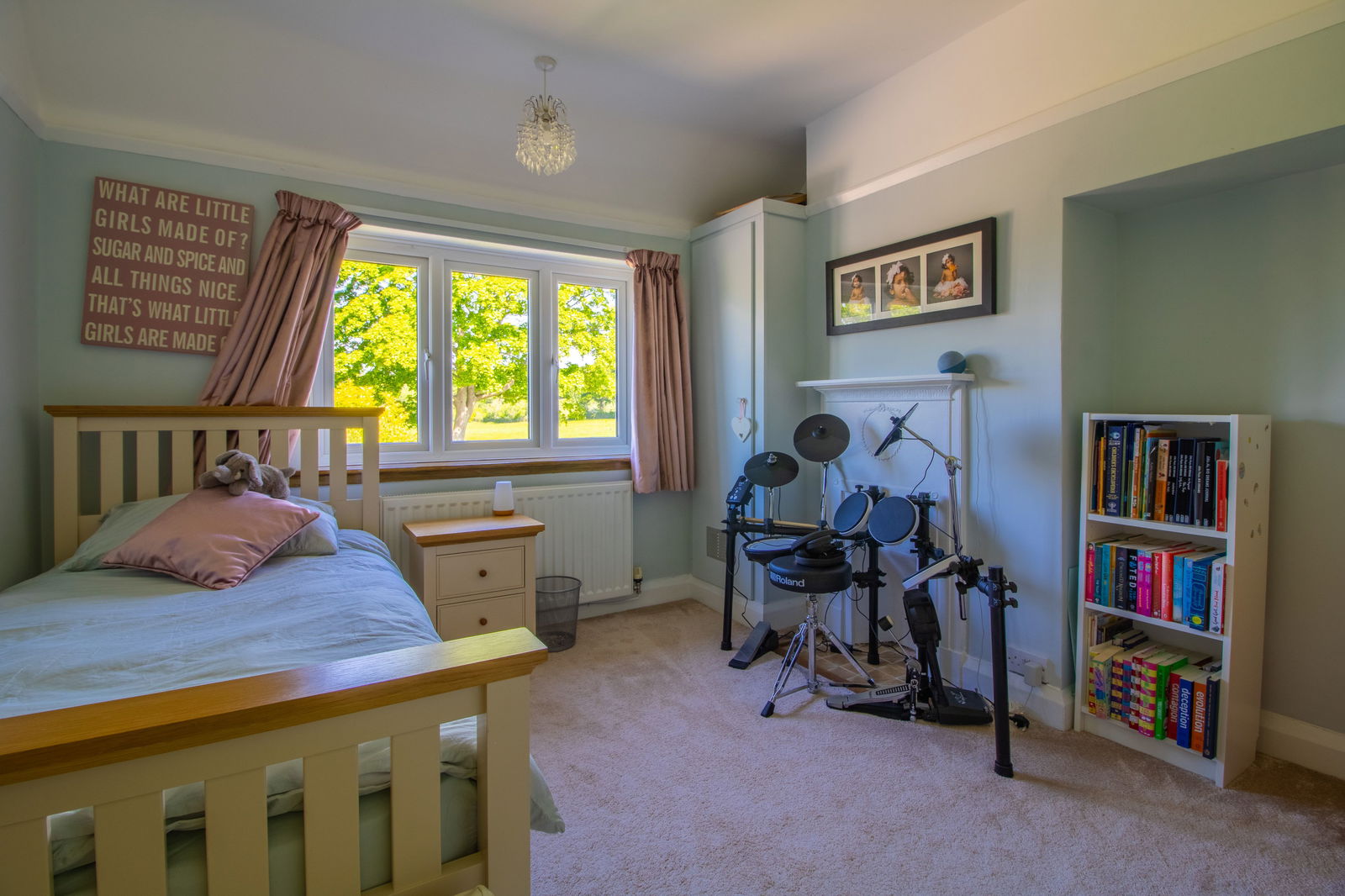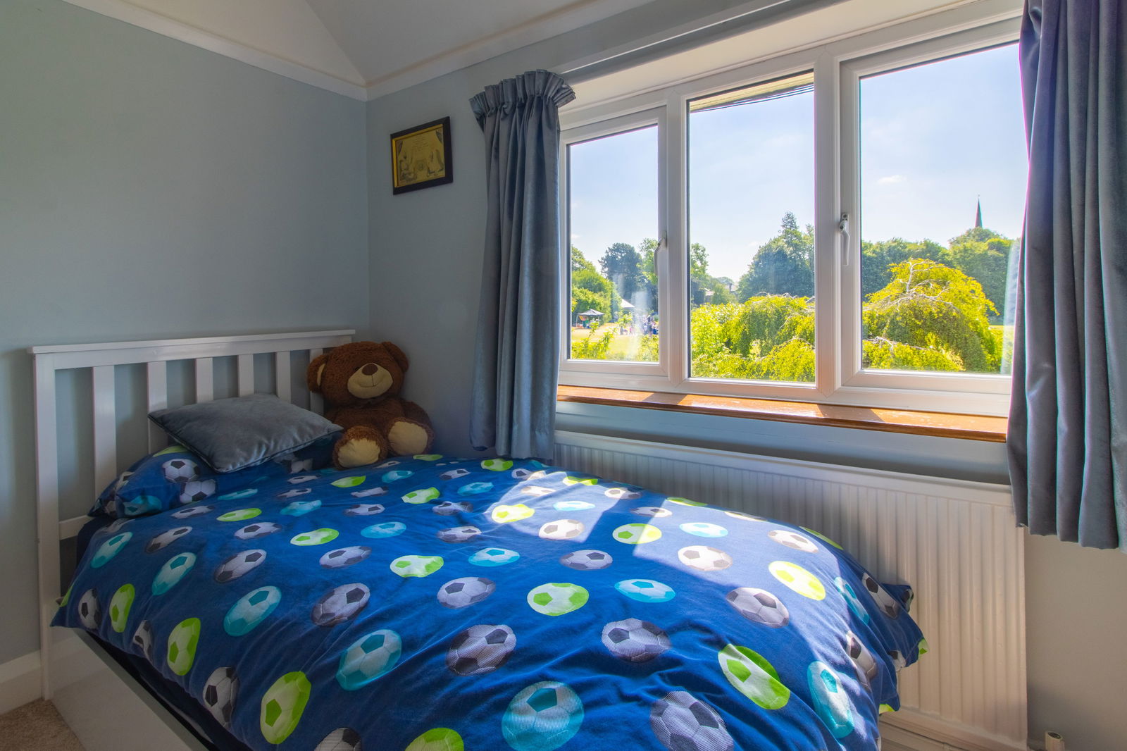 Principal Bedroom – A standout feature with a walk-in bay window offering views of Ashover’s historic church spire, original fireplace, and fitted shelving.