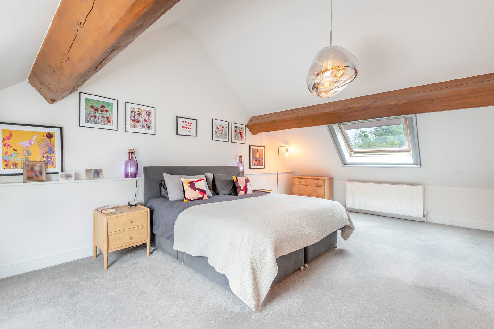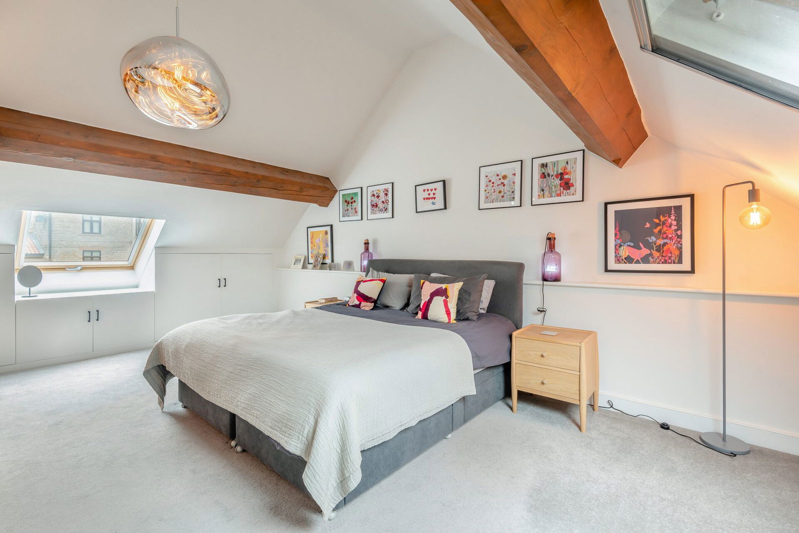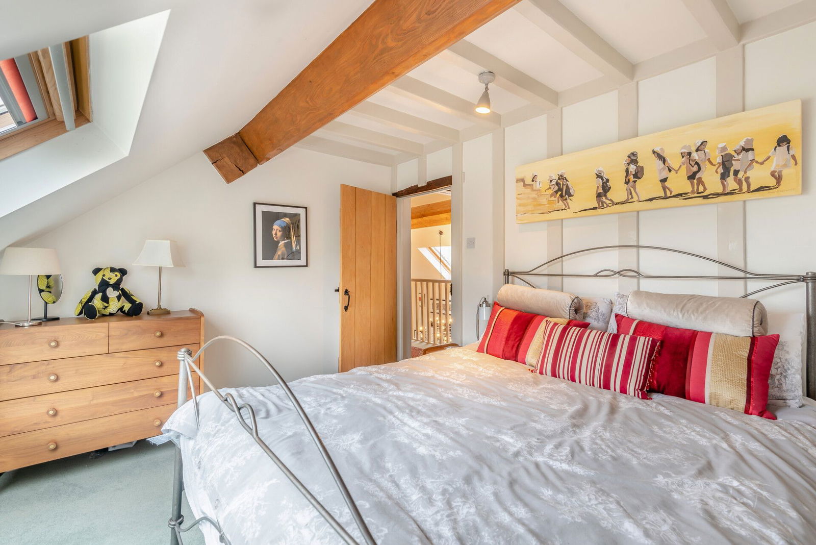 The main bedroom to this floor offers exceptional double proportions with exposed beams to the ceiling, fitted cupboards / wardrobes and Velux skylight windows to both front and rear aspects. There is an additional double bedroom positioned to the rear aspect of the home with an exposed beam and skylight window overlooking the gardens, whilst a single room to the front elevation has a window overlooking the courtyard.