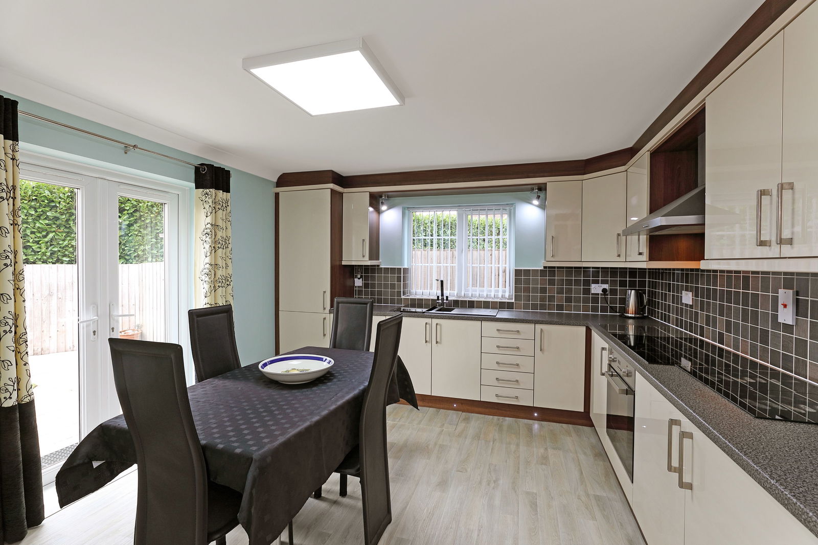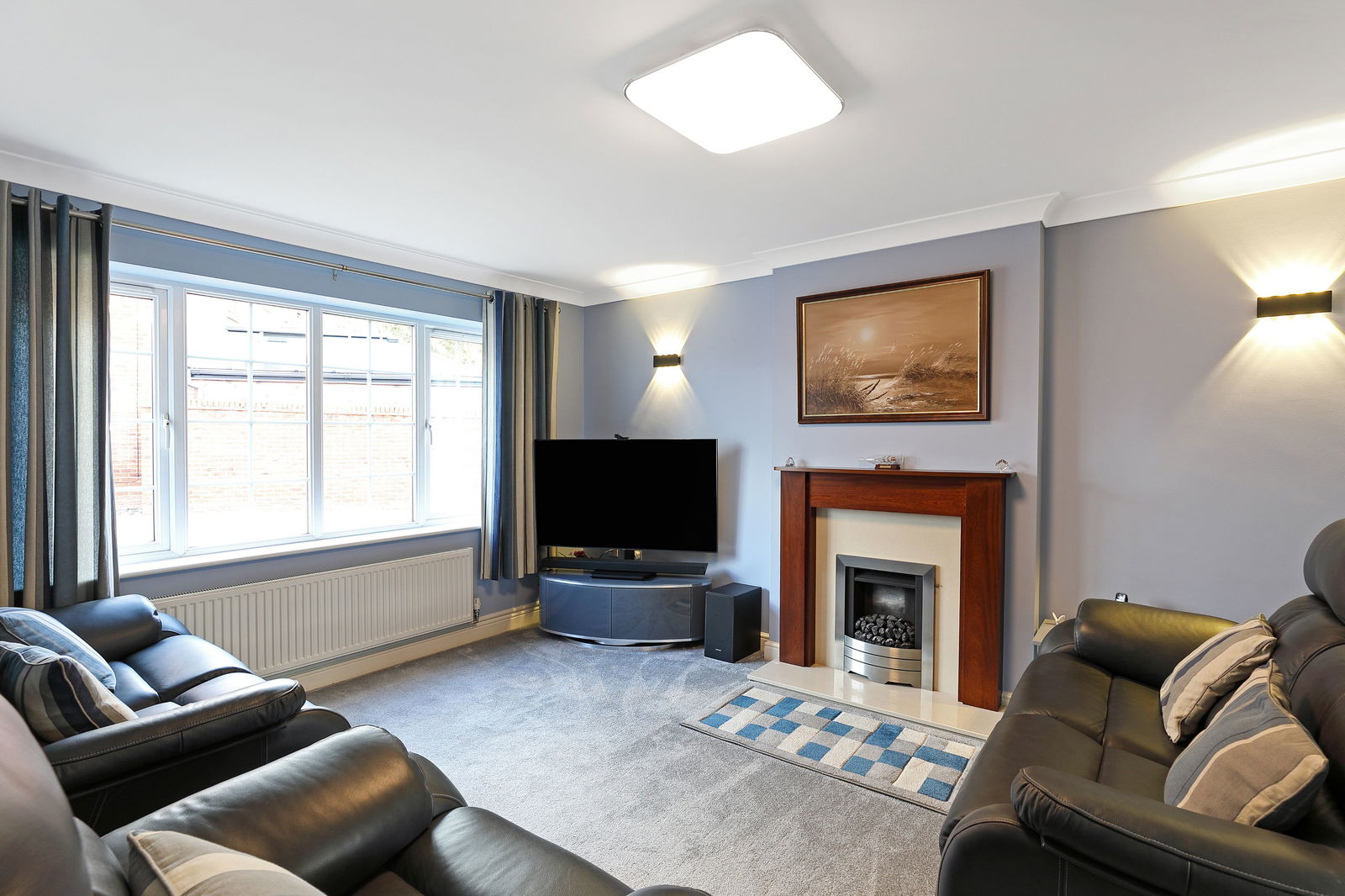 A generous lounge is positioned to the front aspect of the home and features a traditional fireplace which is home to a gas fire, a window to the front aspect and internal double doors opening into the dining room which offers versatile accommodation with a window overlooking the rear garden.