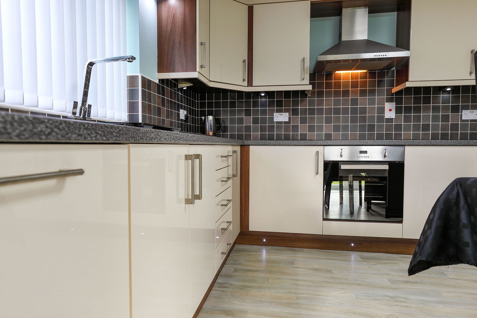 An impressive living kitchen is located to the rear of the property and is perfect for family gatherings and entertaining, bathed in natural light, with French doors opening directly to the rear garden. The kitchen is equipped with an array of stylish wall and base units complemented by a roll-edge work surface with a built-in sink and drainer. A complement of appliances includes a five-ring hob with an electric oven below and extractor fan over, a microwave, a dishwasher and a fridge/freezer. The room has tiled splashbacks whilst a separate utility room is easily accessible from the kitchen, has matching furniture with a work surface incorporating a sink unit, offers additional convenience and has plumbing for an automatic washing machine and a door to the side aspect of the property.