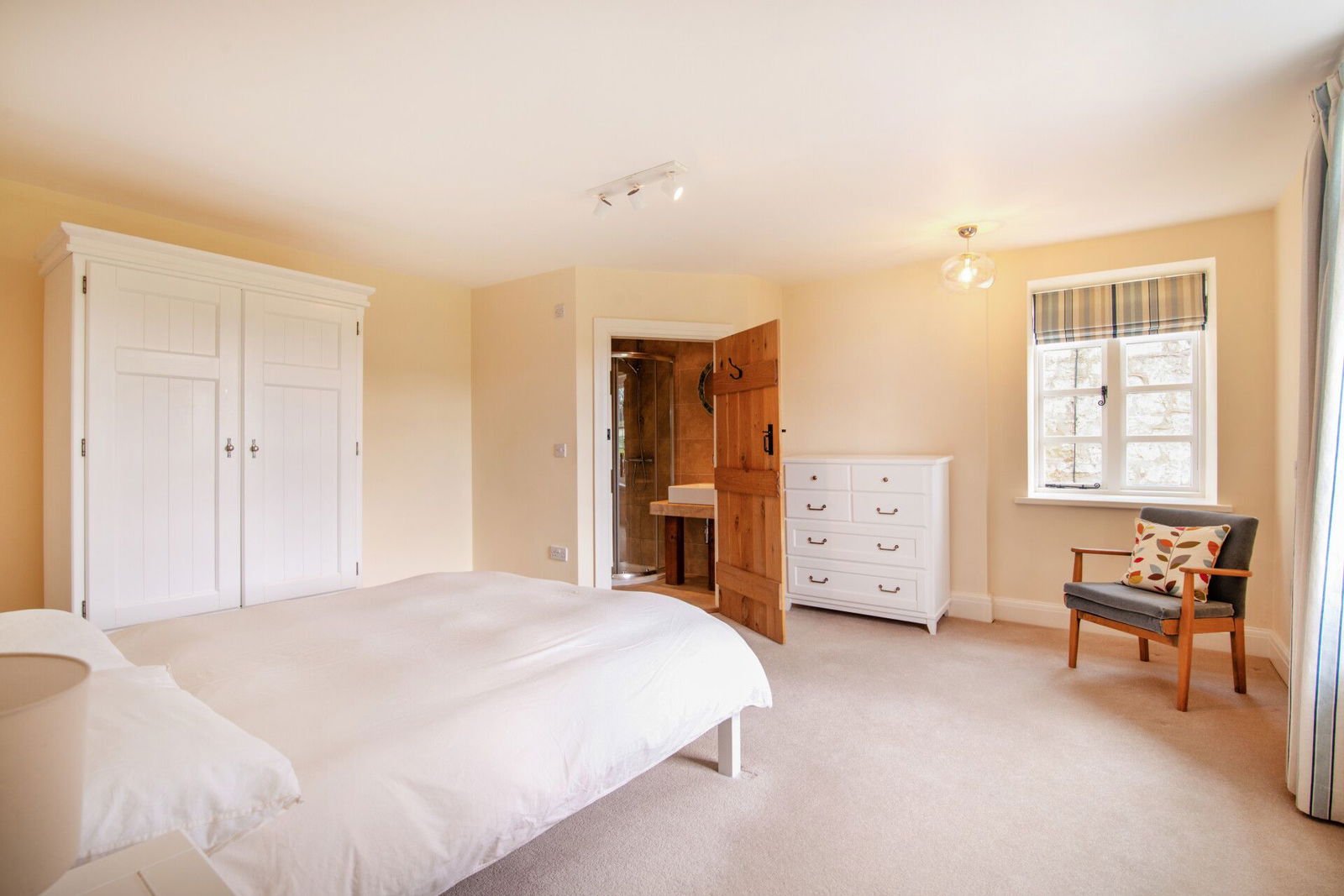 The principal bedroom suite is amazing, incorporating a sitting area / dressing room, and a bedroom with en-suite facilities. The sitting room has windows to front and rear aspects, exposed stone to one wall, beams and trusses on display into the apex of the building and feature exposed brick work. The bedroom offers generous accommodation, has oak framed windows to front and rear, the front enjoying delightful views over the grounds. The room has bespoke oak furniture, and original beams and trusses into the apex of the building. An en-suite includes a double shower, a low flush W.C and a wash hand basin sat on a marble base. The room has tiling to walls and floor, exposed beams and a heated towel radiator.
