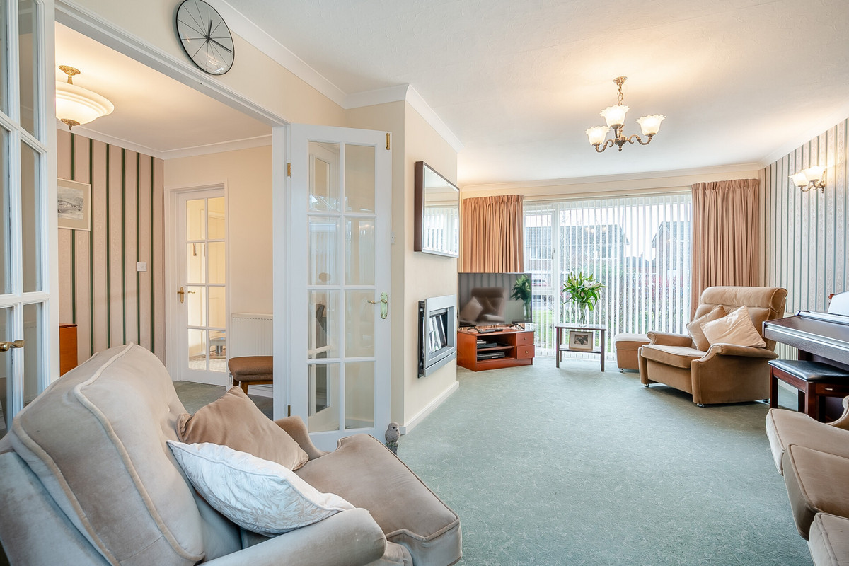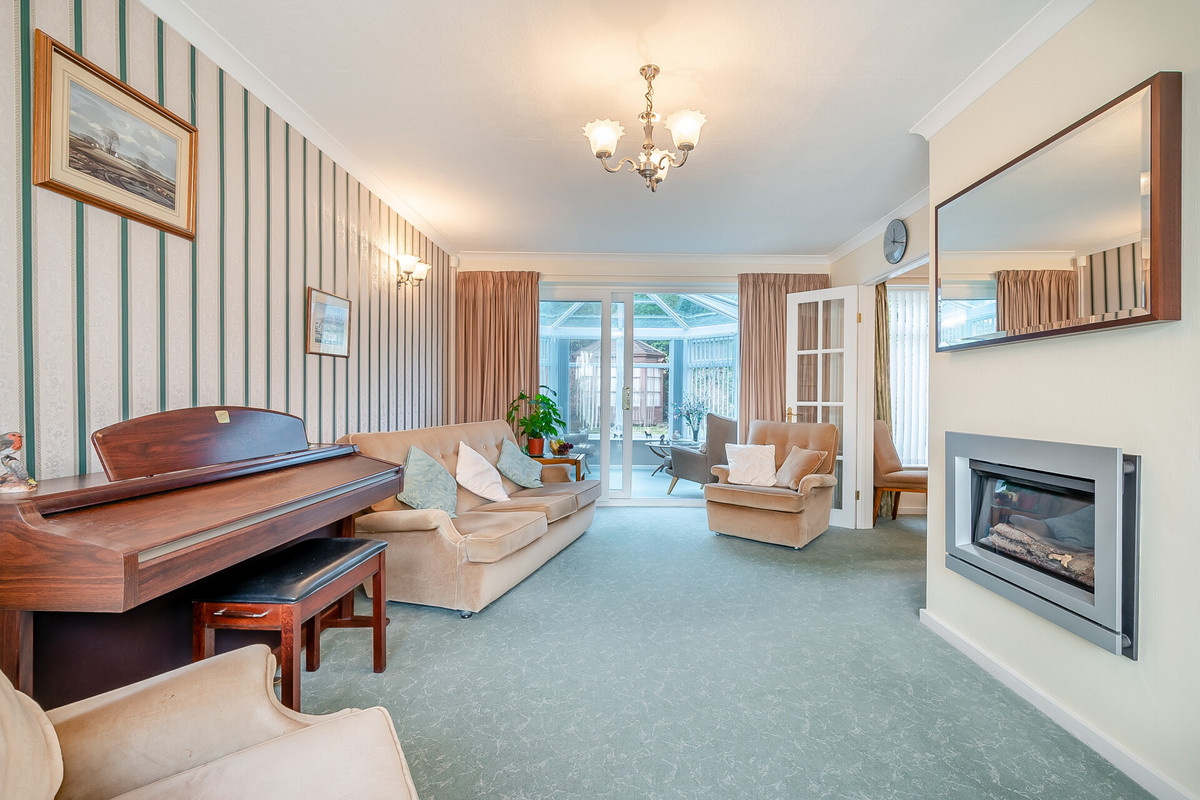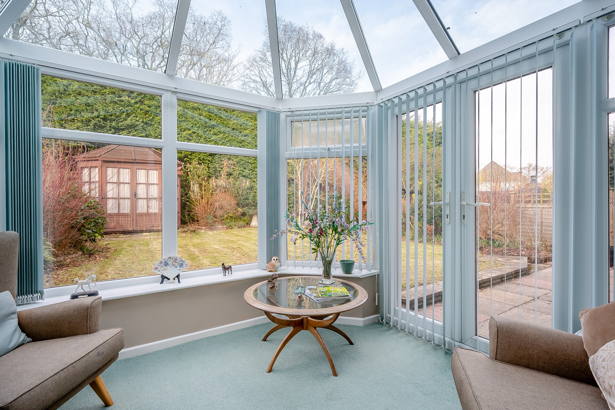 From the hall, step into the breakfast room, which seamlessly connects to the spacious dual-aspect living room, featuring large picture windows to the front and a sliding door leading into the delightful conservatory—a perfect year-round space to enjoy the garden. With further double doors opening onto the rear terrace, it is ideal for summer entertaining.