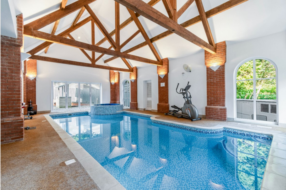 Fine and Country are proud to present this imposing and extremely impressive executive detached home. Situated within this private gated enclave of 5 detached properties this is a phenomenal home. Previously the Show Home, the property has undergone considerable extension and enhancement over the years, to include a sizeable utility and boot room, an incredibly impressive leisure suite with feature beamed ceilings and large bi fold doors opening the space onto the stunning landscaped rear gardens. The leisure suite consists of full-size swimming pool with Jacuzzi, Shower, relaxing sauna and toilet facilities.
