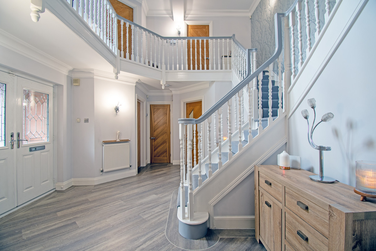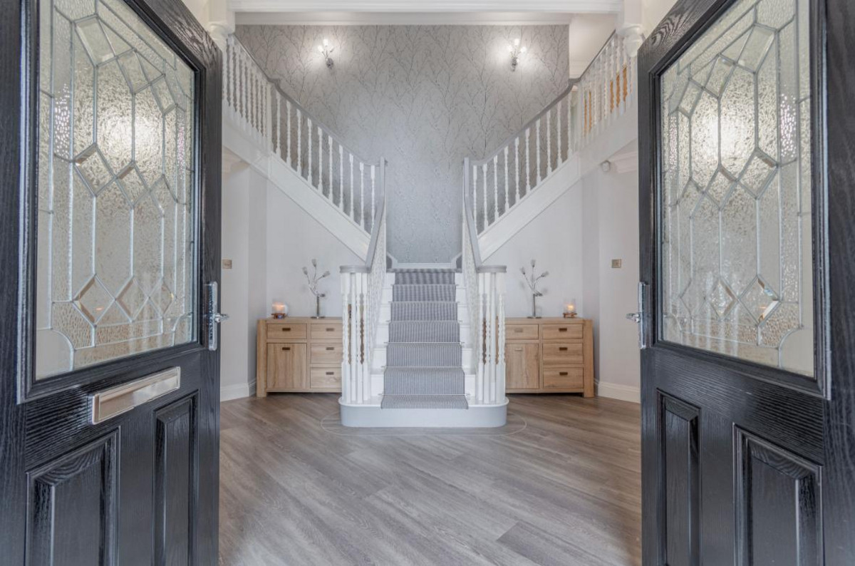 The plot itself is a stunning elevated plot which enhances the grandeur of this property. Ample parking to the fore and side with detached garage. A large children’s play area is also to the fore of the plot and has specialist flooring and feature lighting, along with climbing frames, swings, slides, together with a wooden tree house. The rear garden is an absolute feast for the senses, with various sunny and shaded seating or BBQ spots, large lawned area with maximum privacy throughout. However, the central water feature sets the tone for a wonderful peaceful retreat with cascading waterfalls which can be enjoyed from the gardens as well as the home.