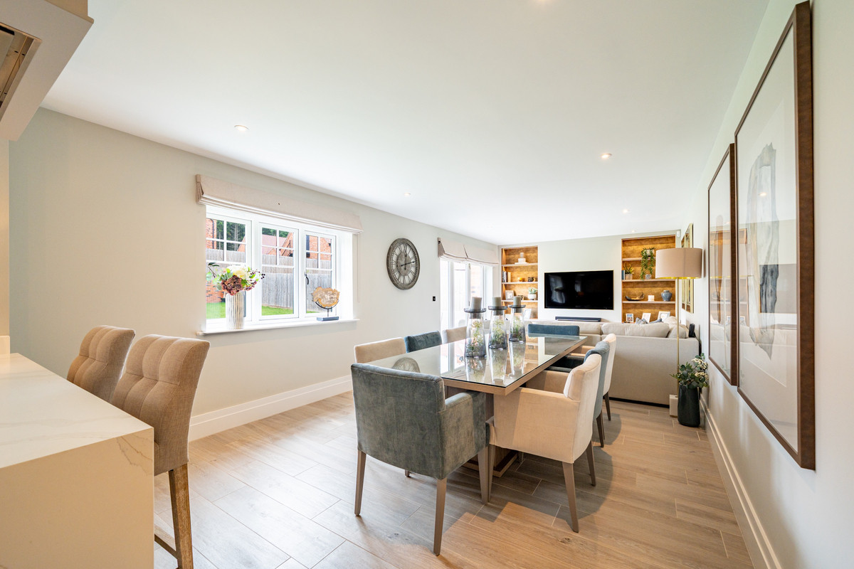 The hallway leads into a stunning open-plan kitchen, dining and family space, opening directly onto the rear garden — ideal for both everyday living and effortless entertaining. The vendors have thoughtfully added a stylish bar area within the kitchen and dining zone, perfect for hosting. Two additional reception rooms offer versatile spaces for quiet relaxation, working from home, or welcoming guests.