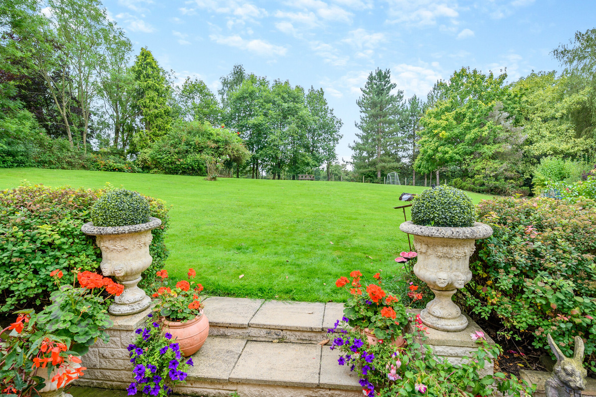Clearwater's location is truly exceptional, with the added bonus of overlooking the first hole of the prestigious Ladbrook Park Golf Club. Whether you are an avid golfer or simply appreciate the open views across the beautiful course, this feature adds a unique and special touch to the property. The combination of the idyllic garden and stunning views makes Clearwater highly desirable for those seeking a peaceful retreat in a picturesque setting. The stunning south-west-facing rear garden at Clearwater is a standout feature, offering a beautiful setting for outdoor living and entertaining. The generous terrace, expansive lawns, and mature trees and shrubbery create a peaceful and private oasis where families can relax and enjoy their surroundings. For practicality, there is easy access from front to back on both sides of the property, and a large storage shed on one side conceals the oil tank from view.