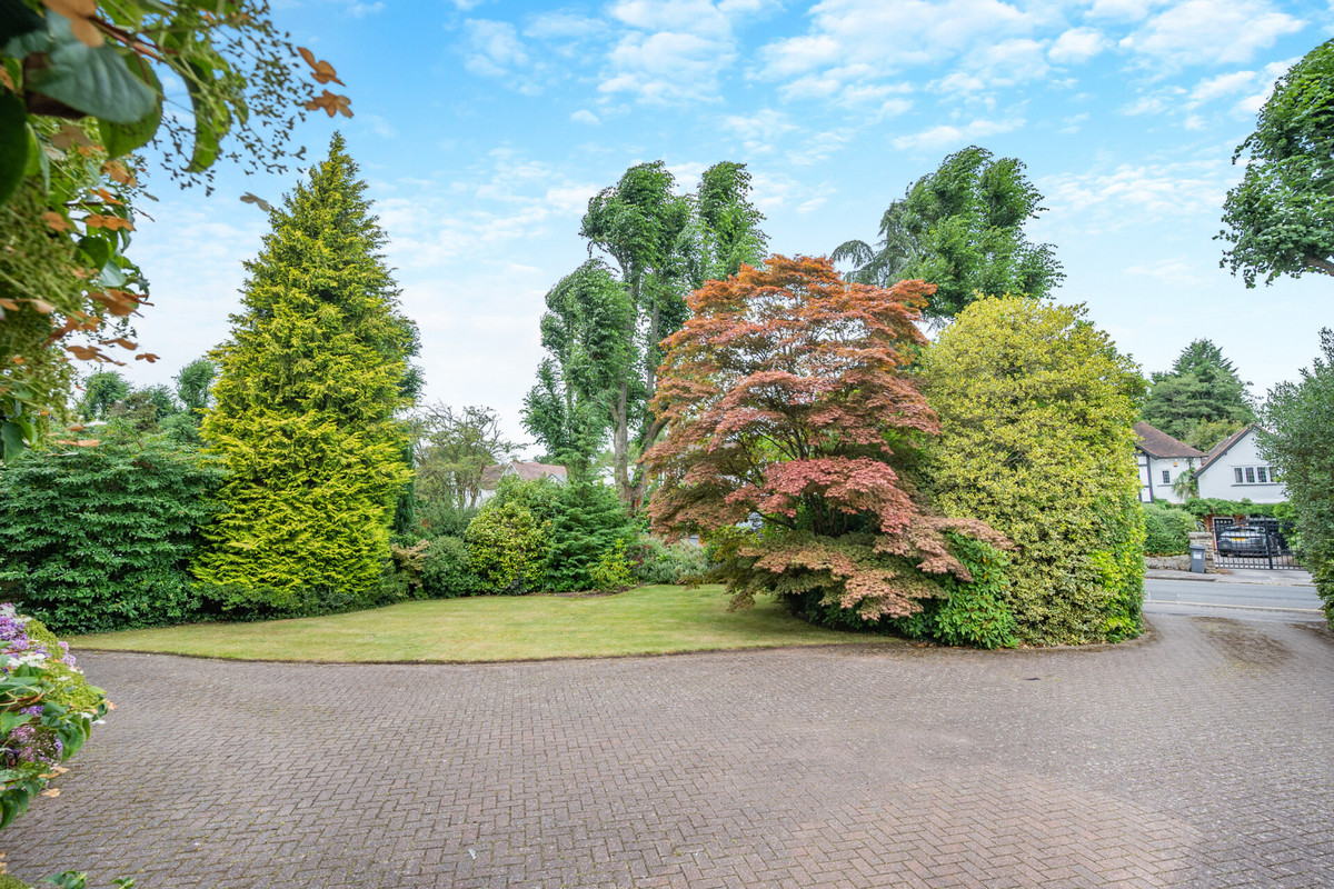 Set back from Alderbrook Road, Greenacres has a generous and smartly presented frontage. The block-paved driveway provides ample parking for around 10 cars, and the large lawned garden, with its beautiful mature Acer, is privately screened behind an abundance of tall trees, shrubbery, and deep hedges. There is gated access to one side through a tall arched door set into a high wall, offering privacy and security. To the front of the property, several stunning hydrangeas perfectly frame the entrance to this delightful home.