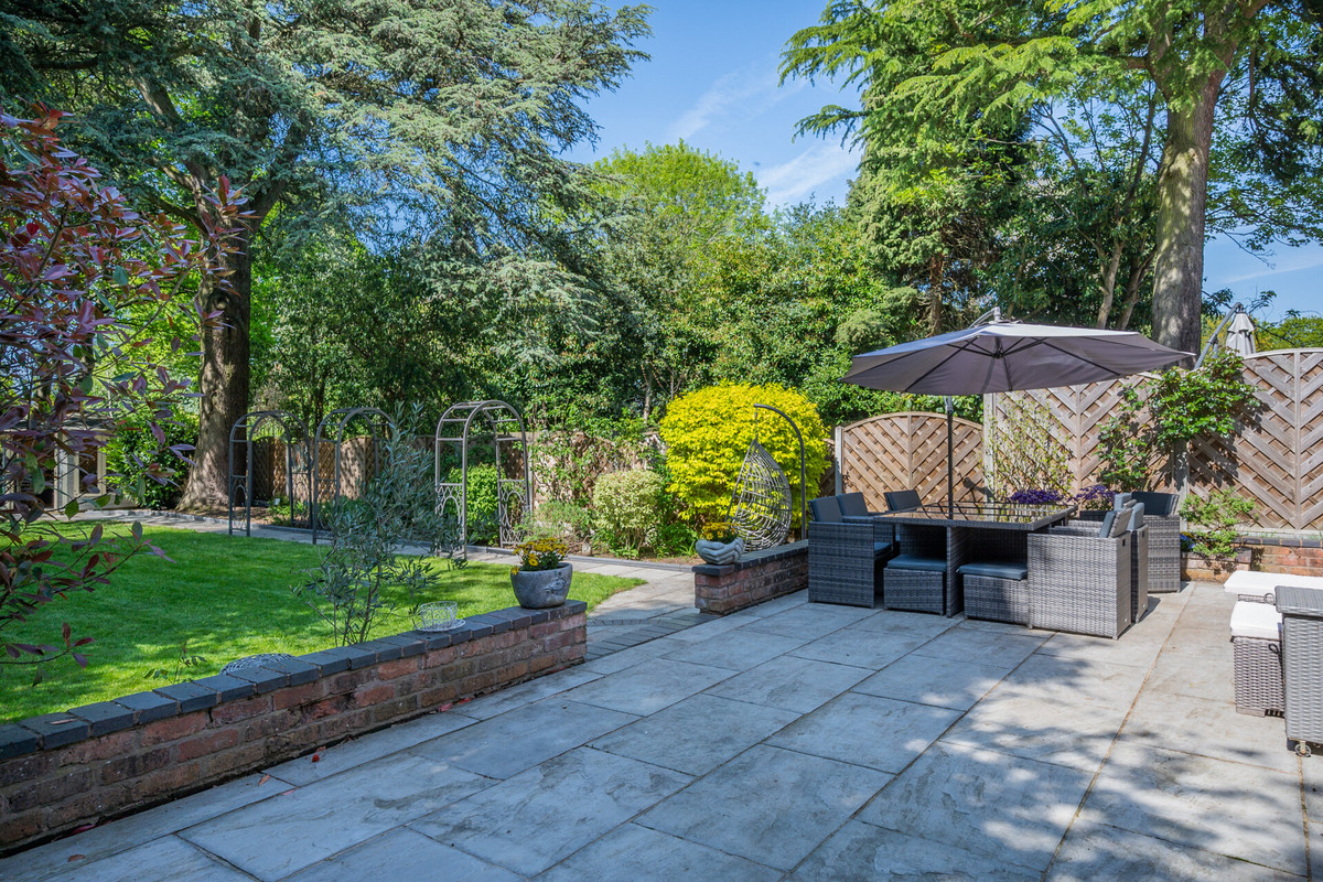 The fabulous west-facing garden provides a beautifully landscaped, private haven of peace and tranquillity. To the side, an enclosed Victorian courtyard offers the perfect spot for morning coffee, along with practical access from front to back via a tall, secure gated entrance and double garage doors at both ends of the garage.