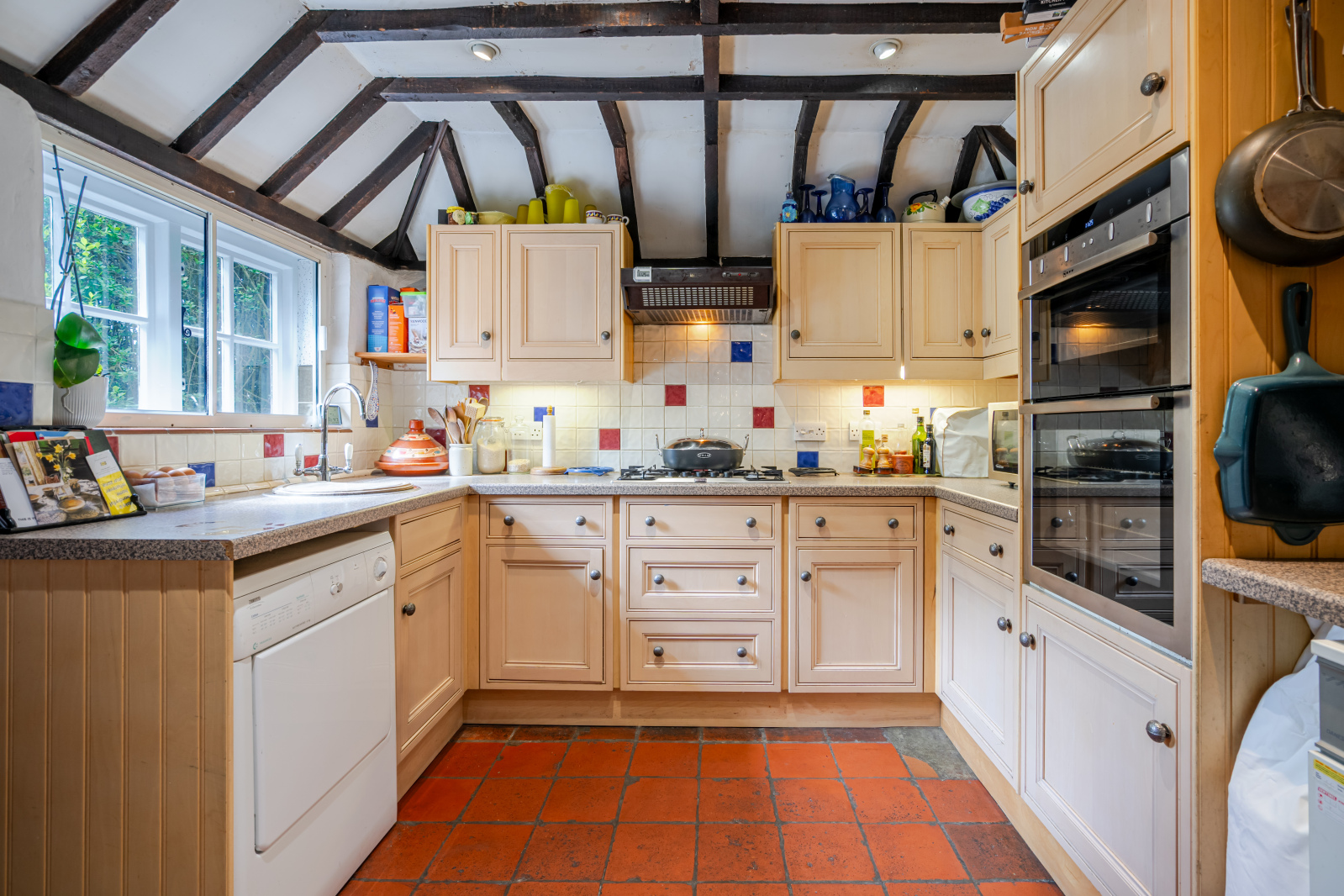Outside, the property enjoys a generous and beautifully mature enclosed garden, ideal for outdoor living. Additional benefits include a double garage and ample driveway parking, making this unique home as practical as it is picturesque.