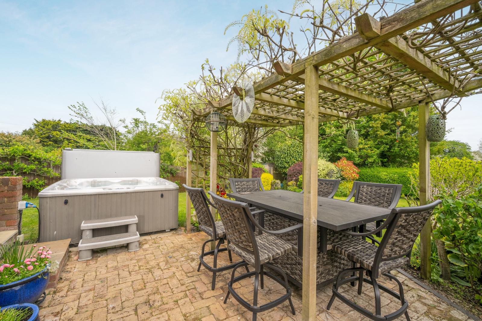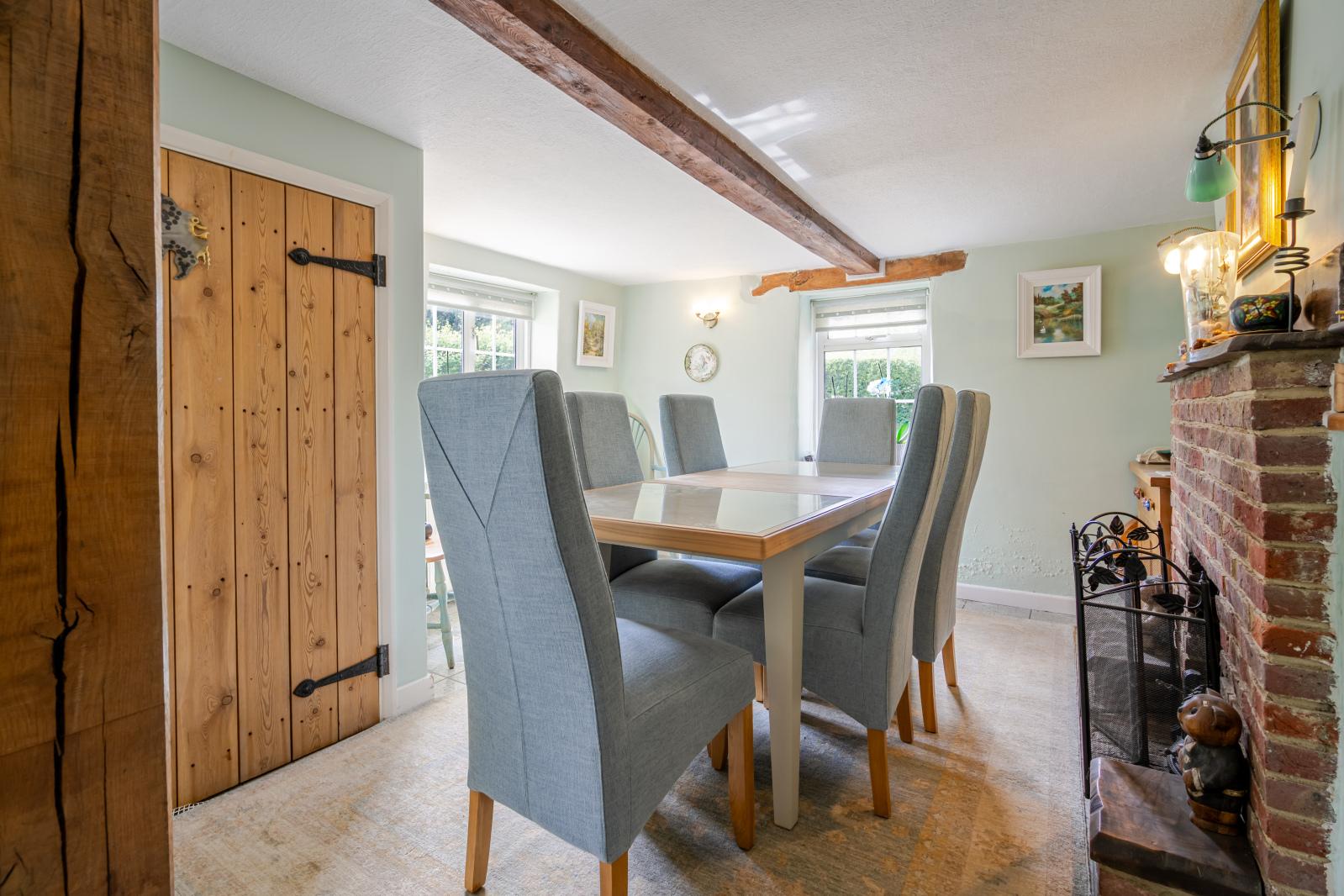 To the front, a private driveway provides ample parking, while to the rear, the mature garden offers a peaceful, established setting with countryside views. A raised patio is ideal for al fresco dining or summer entertaining, and there is a shed for additional storage.