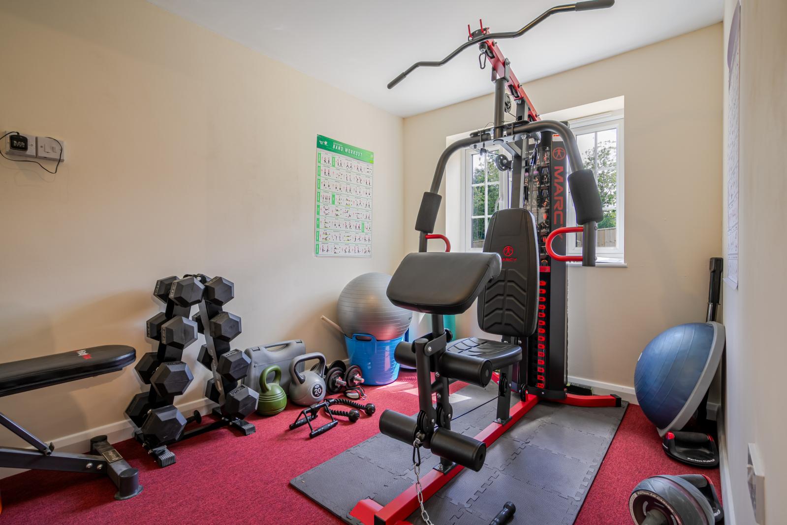 At the rear of the house, a dedicated office, complete with shower room and access to a gym, creates a fantastic home workspace oralternativelycan be easily reconfigured into a self-contained annexe with its own private entrance. This provides enormous potential for guest accommodation, multigenerational living, or even a rental opportunity.