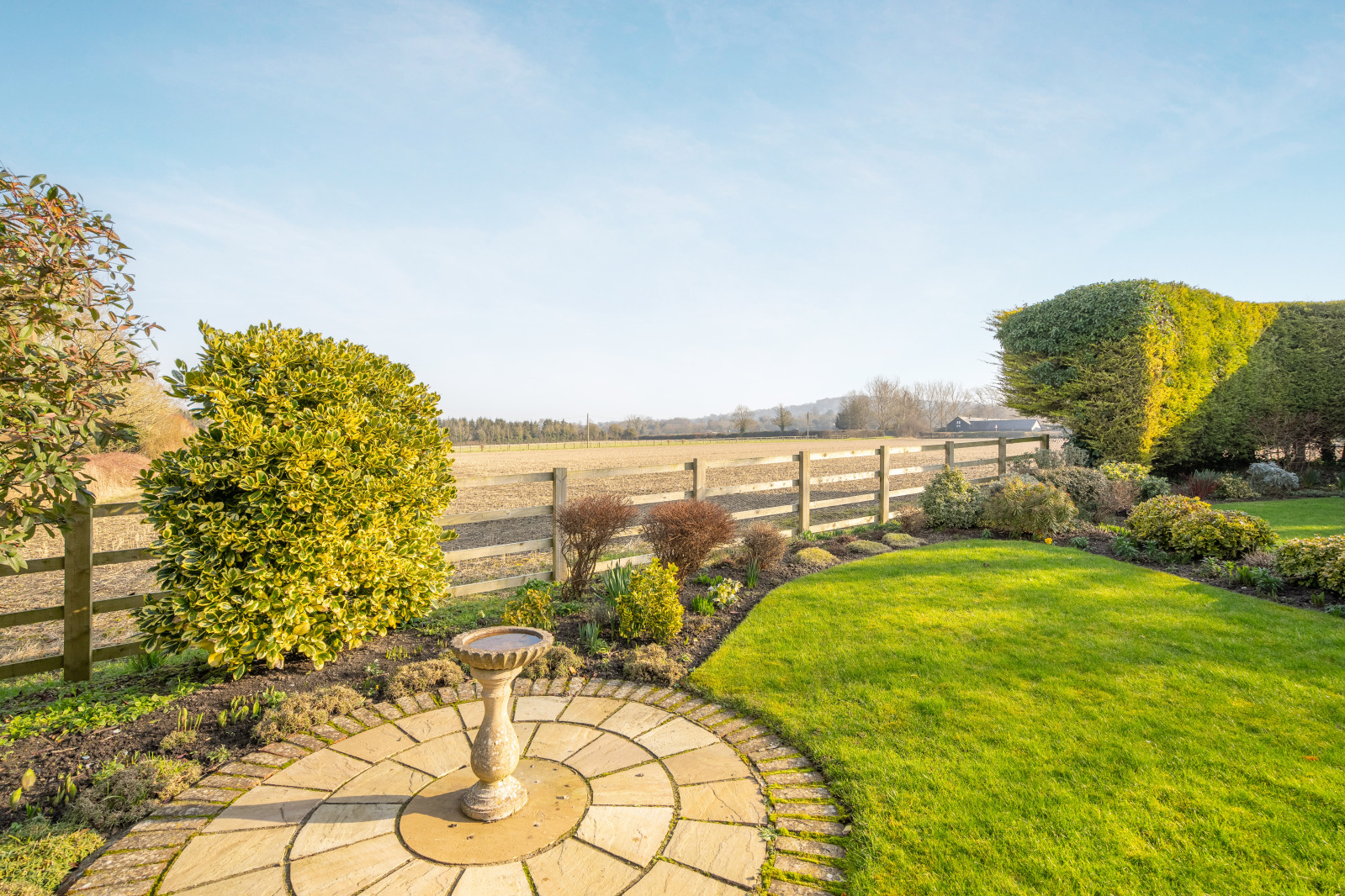 Externally, the property enjoys a generous frontage with a well-maintained lawn and ample driveway parking for multiple vehicles, leading to a double garage. The rear garden has been thoughtfully landscaped, featuring manicured beds and mature shrubbery, a large patio ideal for alfresco dining, and a charming summer house. Multiple storage sheds provide practicality, while uninterrupted views over open countryside, within Greenbelt and Chiltern Landscapes, create the most attractive back drop.