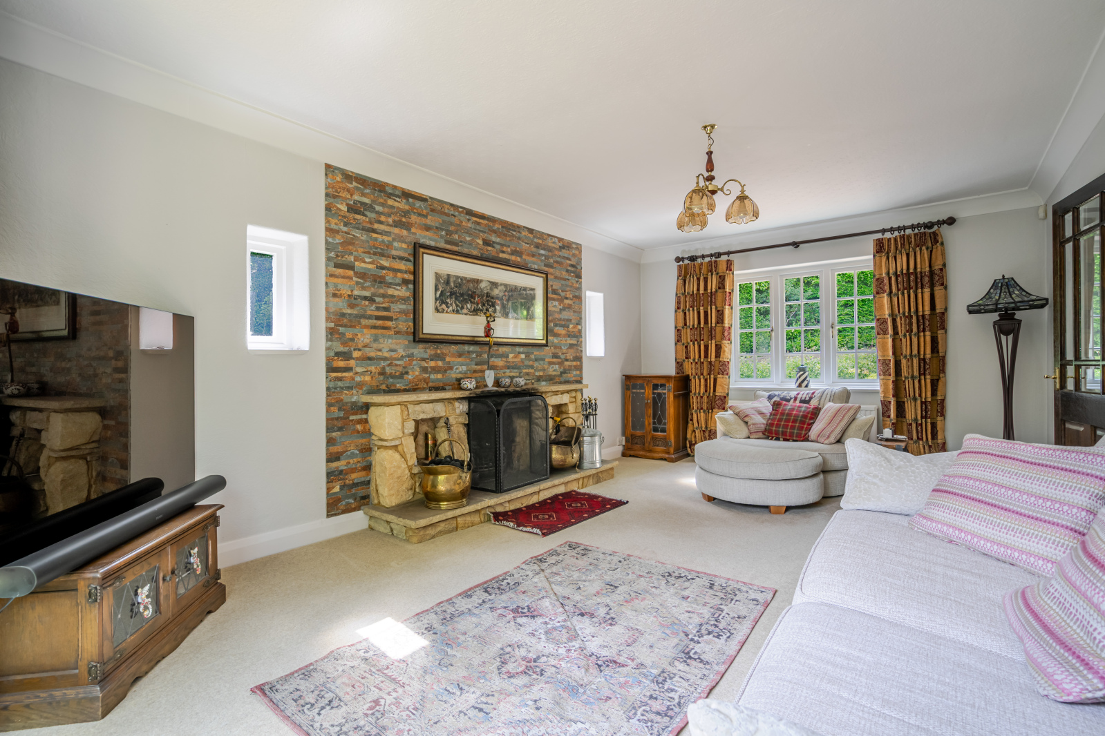 Surrounded by mature gardens and woodland, the property enjoys a unique sense of privacy while still being conveniently located close to local towns, transport links, and highly regarded schools.