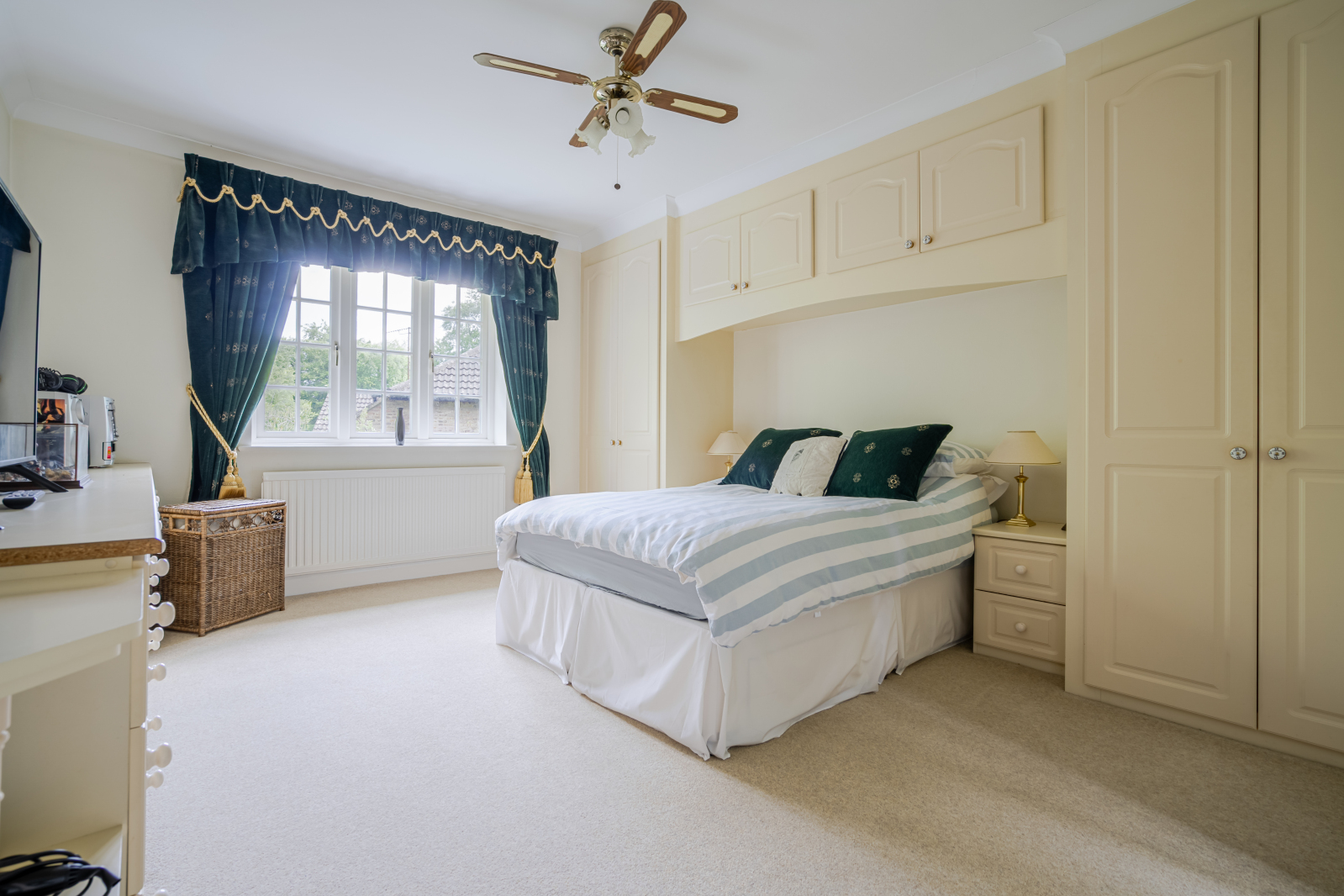 Upstairs, the property offers six bedrooms, each enjoying its own character and charm. The principal suite is particularly impressive, exceeding 300 sq. ft, and benefits from a luxury en-suite bathroom and a spacious walk-in wardrobe. Bedrooms two and three also include en-suite shower rooms, while bedrooms four and five are served by a stylish family bathroom. Bedroom six has been thoughtfully adapted as a home office, with bespoke fitted furniture and generous built-in shelvingperfect for remote work or study.