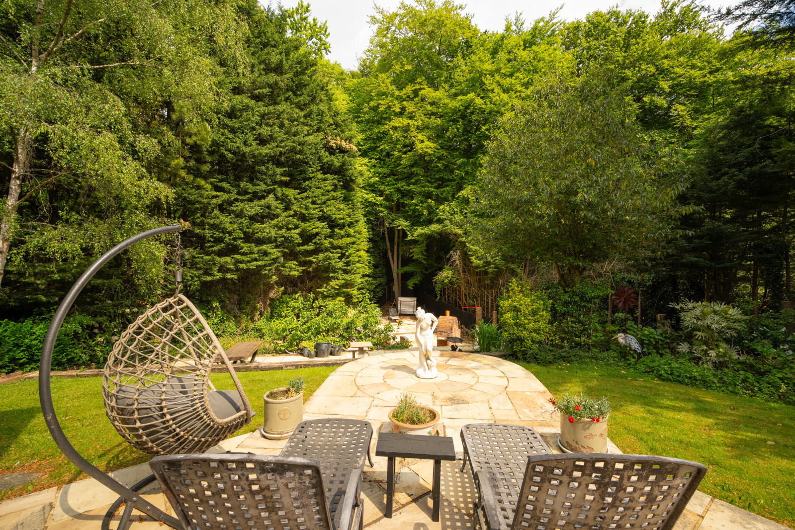 The gardens surrounding the property are a true highlightpeaceful, established, and landscaped to create a sense of seclusion and space. A tiered rear garden provides multiple zones for al fresco dining, relaxing, or entertaining, and is bordered by a rich selection of mature trees and planting that offer year-round interest and privacy.
