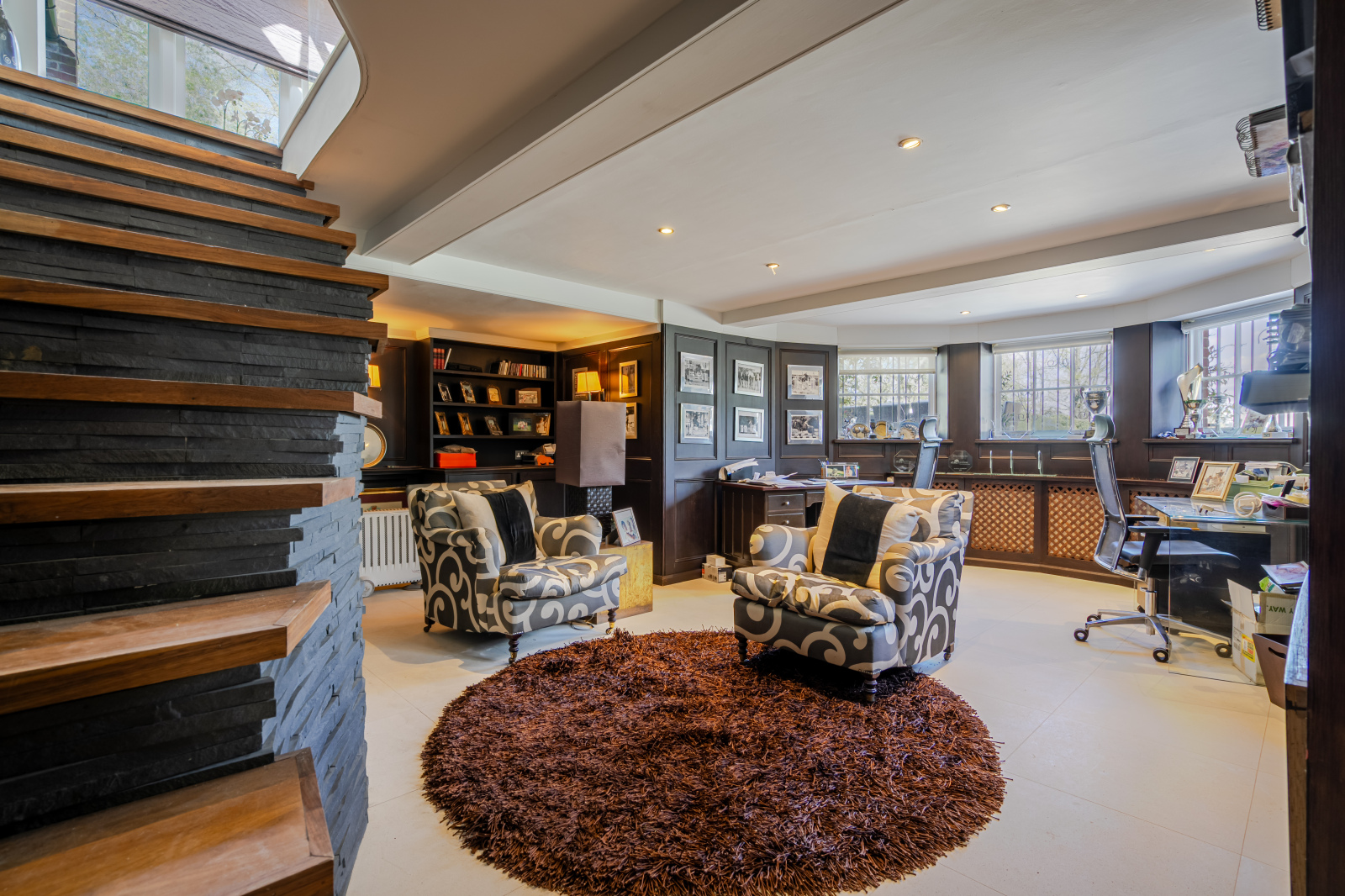 Originally housing the kitchens and sculleries, the lower ground floor now features a spacious home office with bespoke cabinetry, panelled walls, and Travertine flooring. The principal bedroom suite occupies this level, accessed via elegant walnut doors, and includes underfloor heating, a luxurious bathroom with a freestanding bath and steam shower, and two fully fitted dressing rooms.