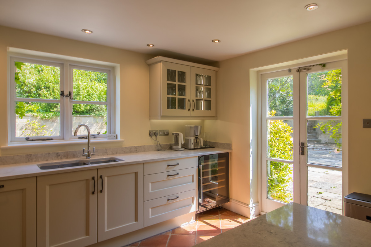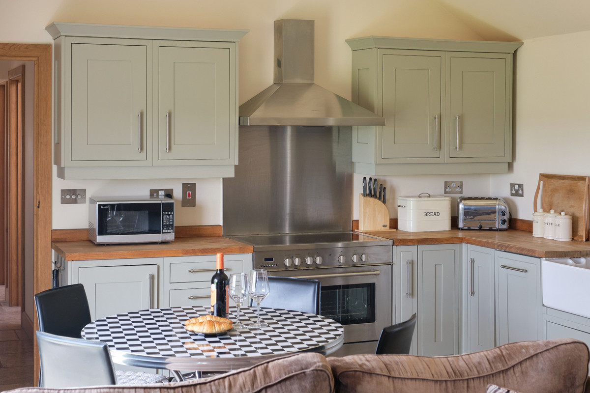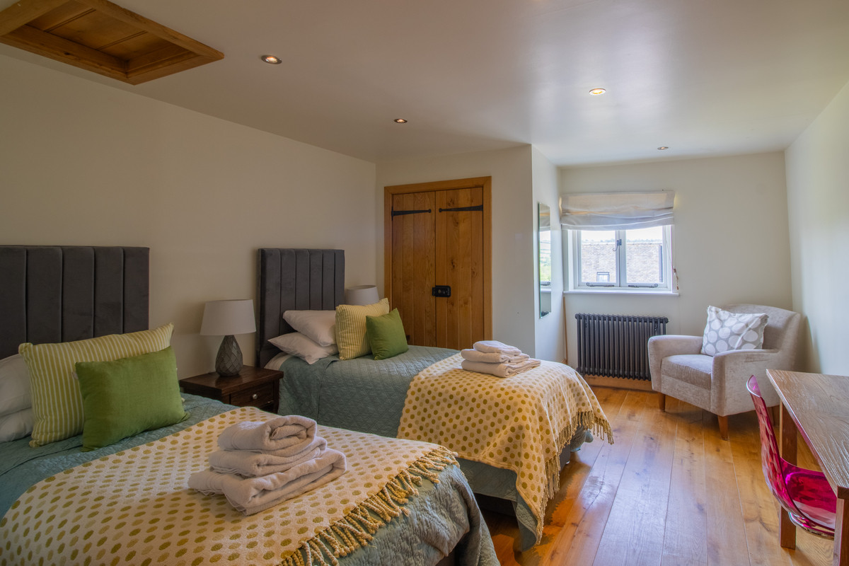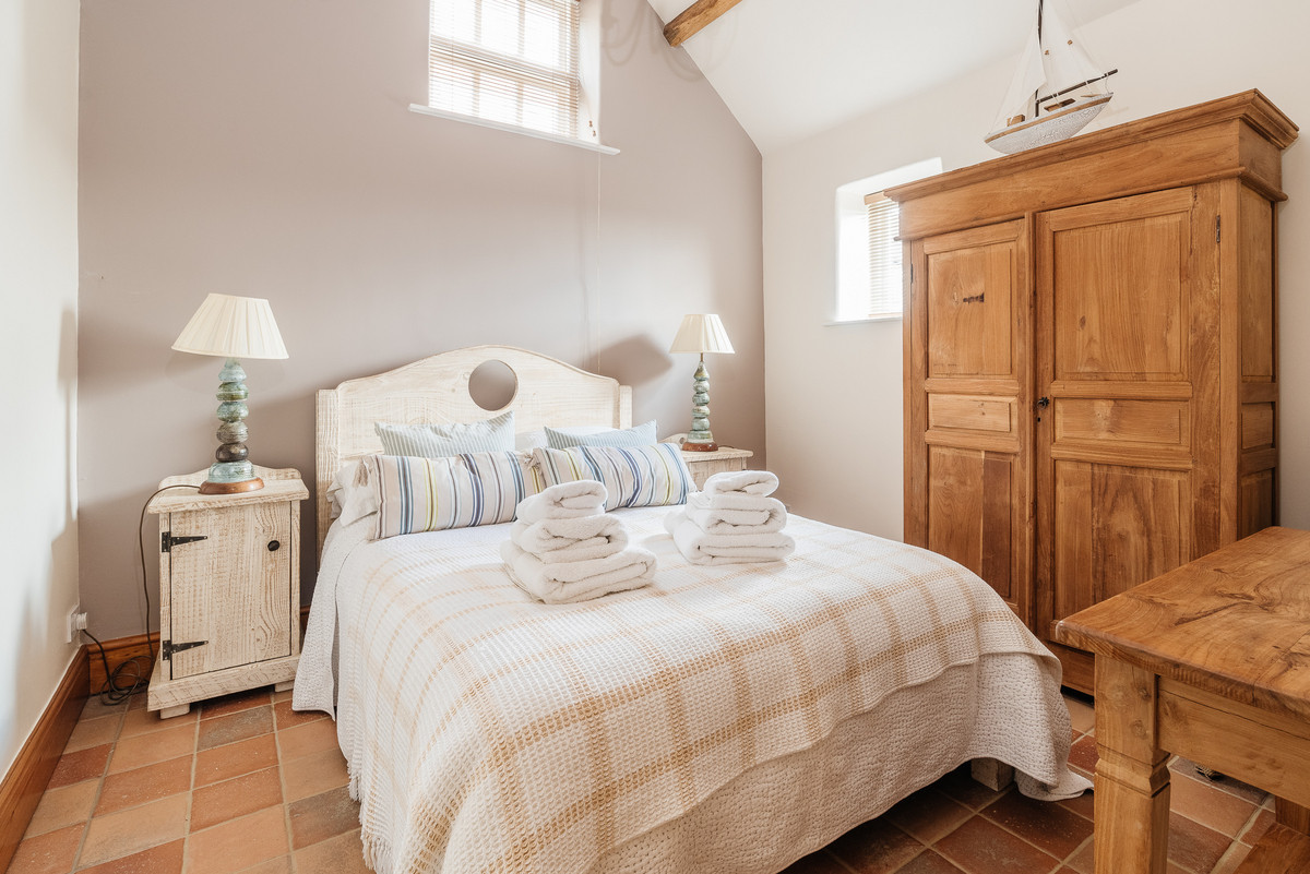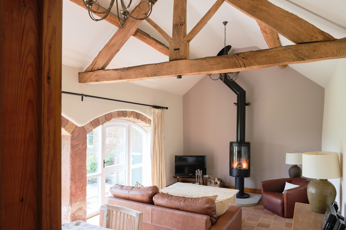 A serene ground-level cottage for up to four guests, featuring two comfortable double bedrooms, a contemporary open-plan kitchen and lounge area with a chic wood burner.