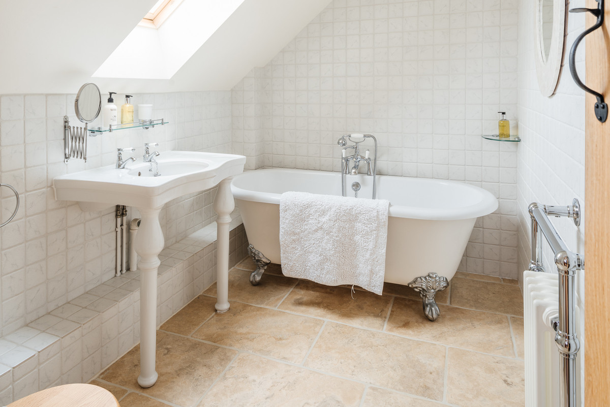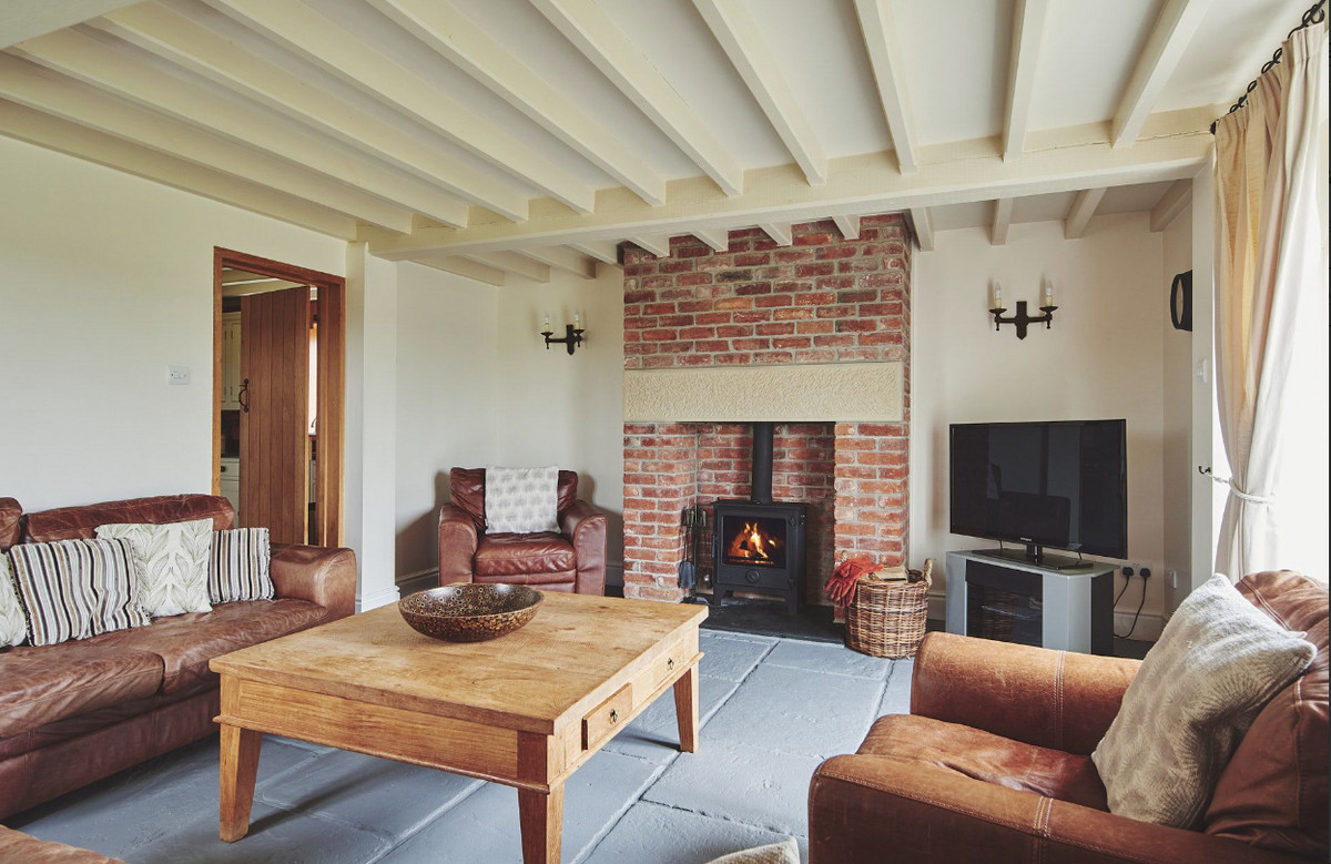 Curlew Cottage: Currently utilized as the site manager's residence, this spacious cottage sleeps up to six guests. It features antique wrought iron beds, a roll-top bath, a well-equipped kitchen, and a living area with a gas stove.