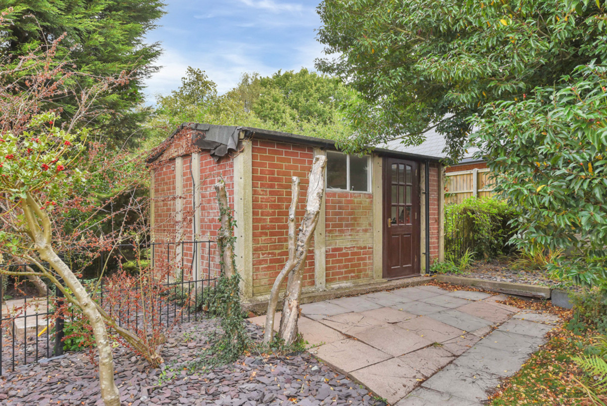 To the east of the driveway, a fully enclosed lawned garden, bordered by hedging and fencing, offers a charming and versatile outdoor space. Once a thriving vegetable and fruit garden, this area retains its potential for homegrown produce. Set just beyond, a separate outbuilding serves as a practical and private home office, ideal for remote working or creative pursuits. This side garden also presents an excellent opportunity for the development of detached garaging, allowing the existing integral garage to be seamlessly incorporated into the main property.