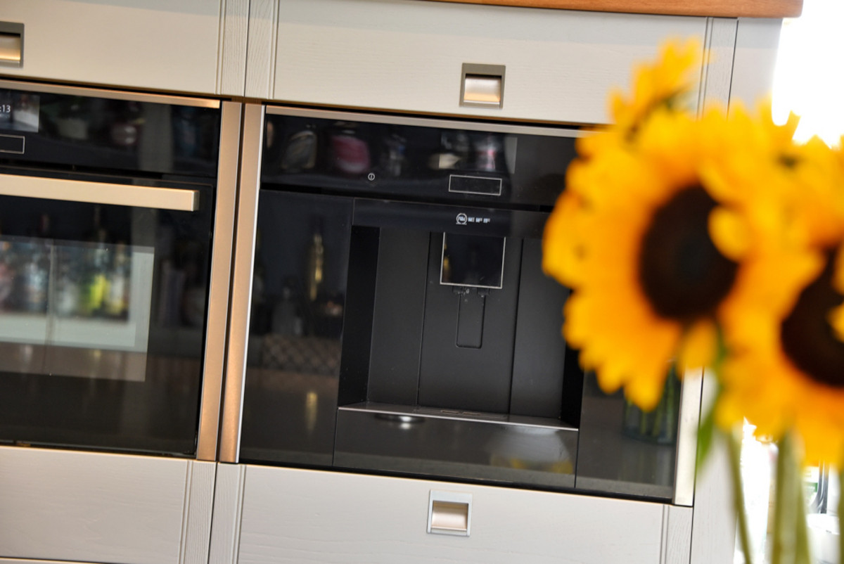 oven, Neff coffee machine, full-height fridge and freezer, dishwasher, and an ever-hot electric range cooker with induction hob and hot plate - catering to every culinary need. Framed by a tasteful display mantle, cleverly concealed cupboards on either side add both practicality and charm.