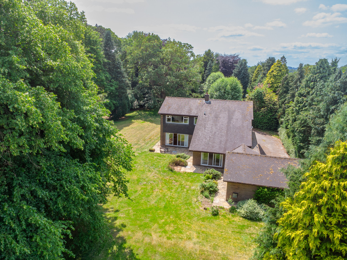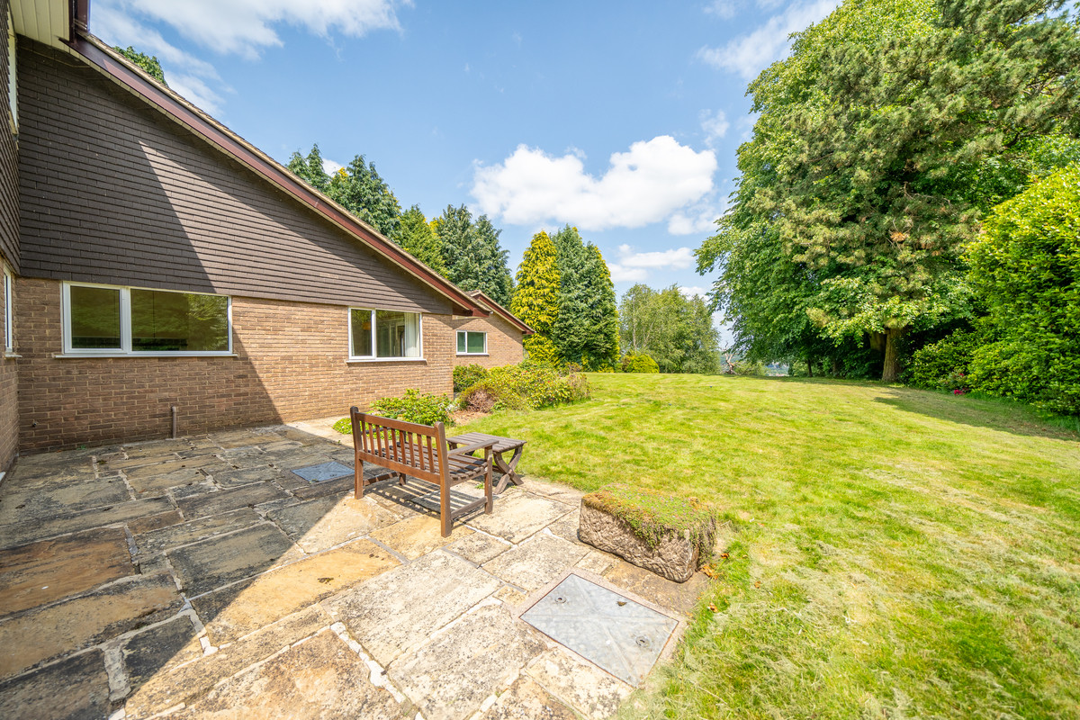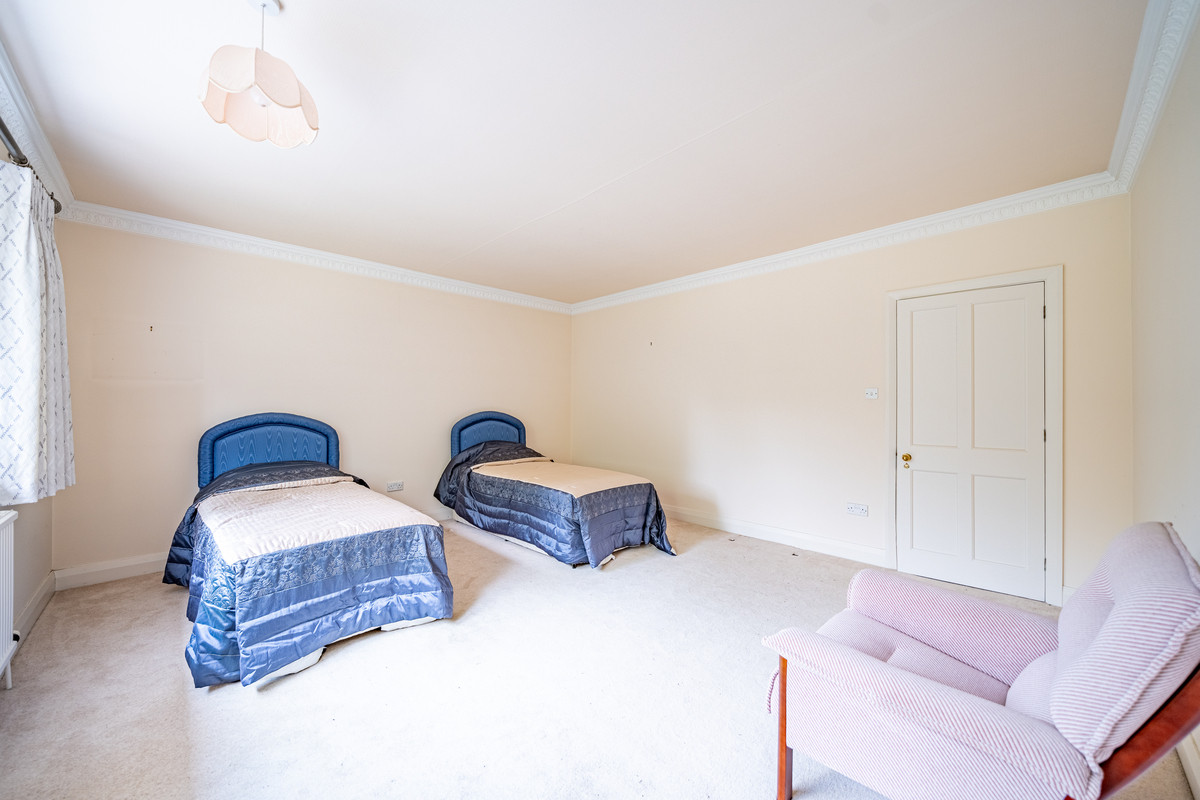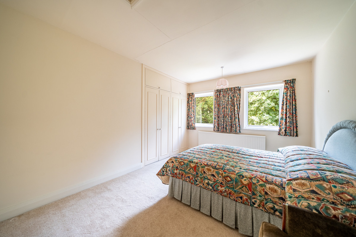 The highlight of the first floor is the principal bedroom, generously proportioned and positioned to take full advantage of the far-reaching panoramic views across the valley. It benefits from its own en suite bathroom and offers an excellent foundation for a striking modernisation. Two further well-sized bedrooms provide flexibility for family life or working from home, all enjoying elevated outlooks and natural light that emphasise the home’s exceptional setting. A family bathroom and a practical storage room, with access to the eaves, complete the upstairs accommodation.
