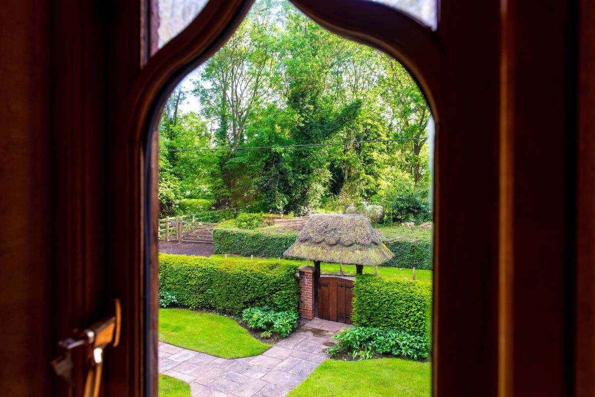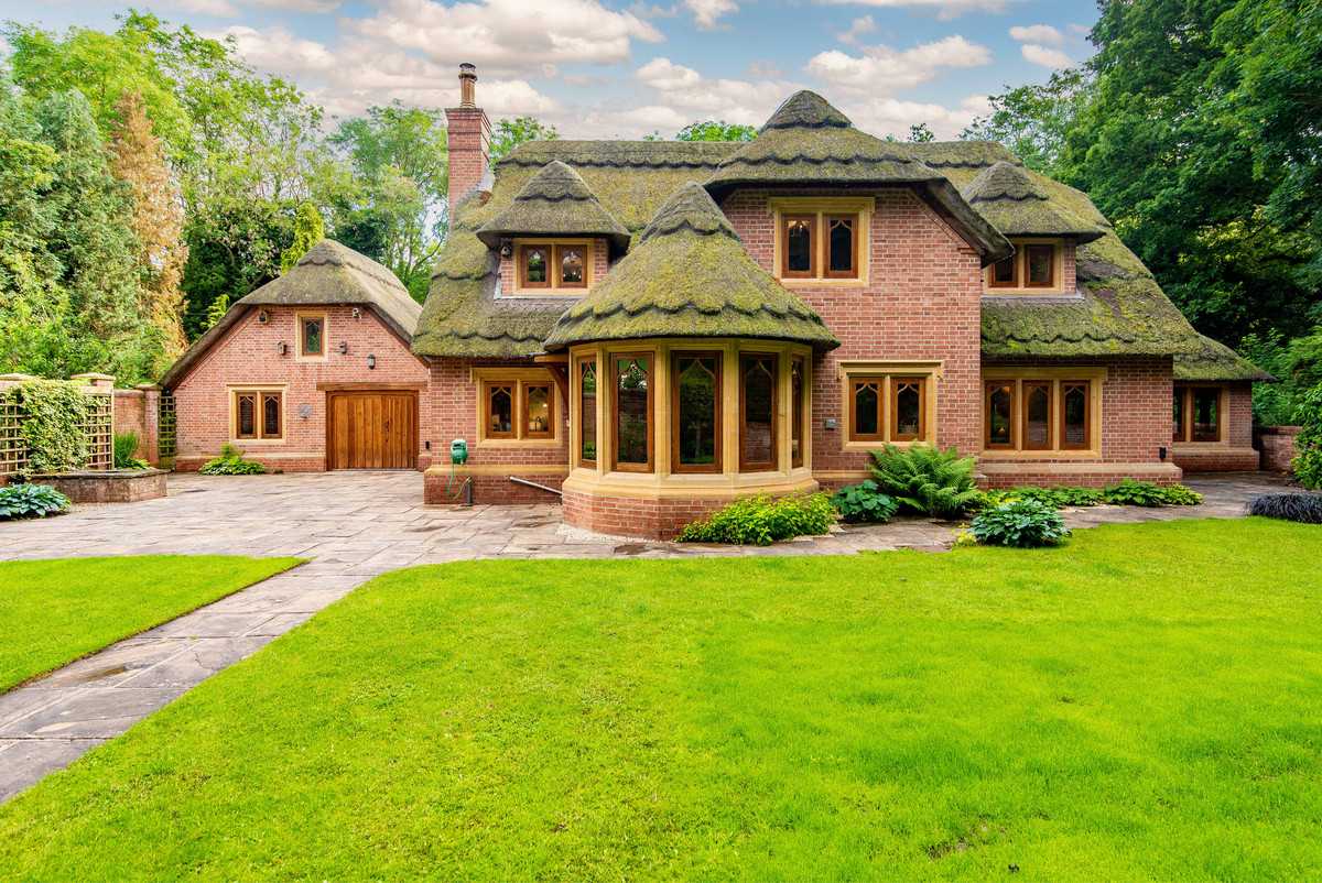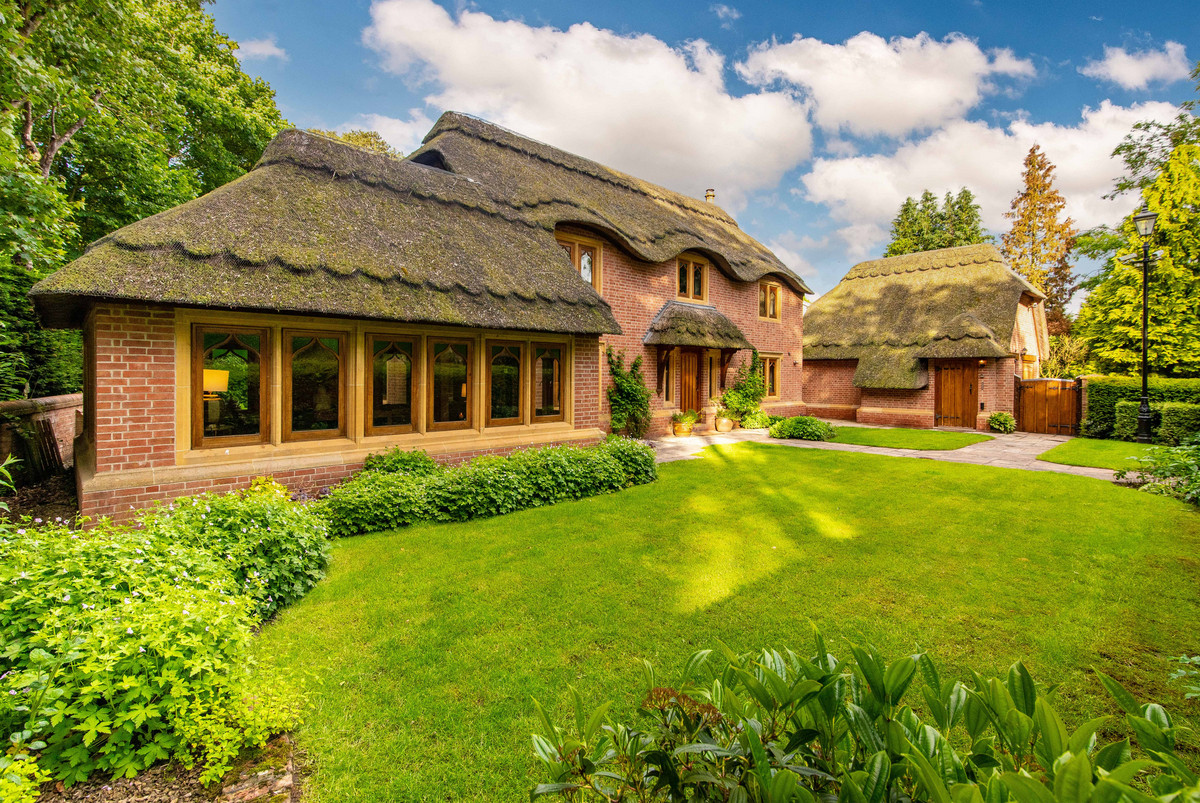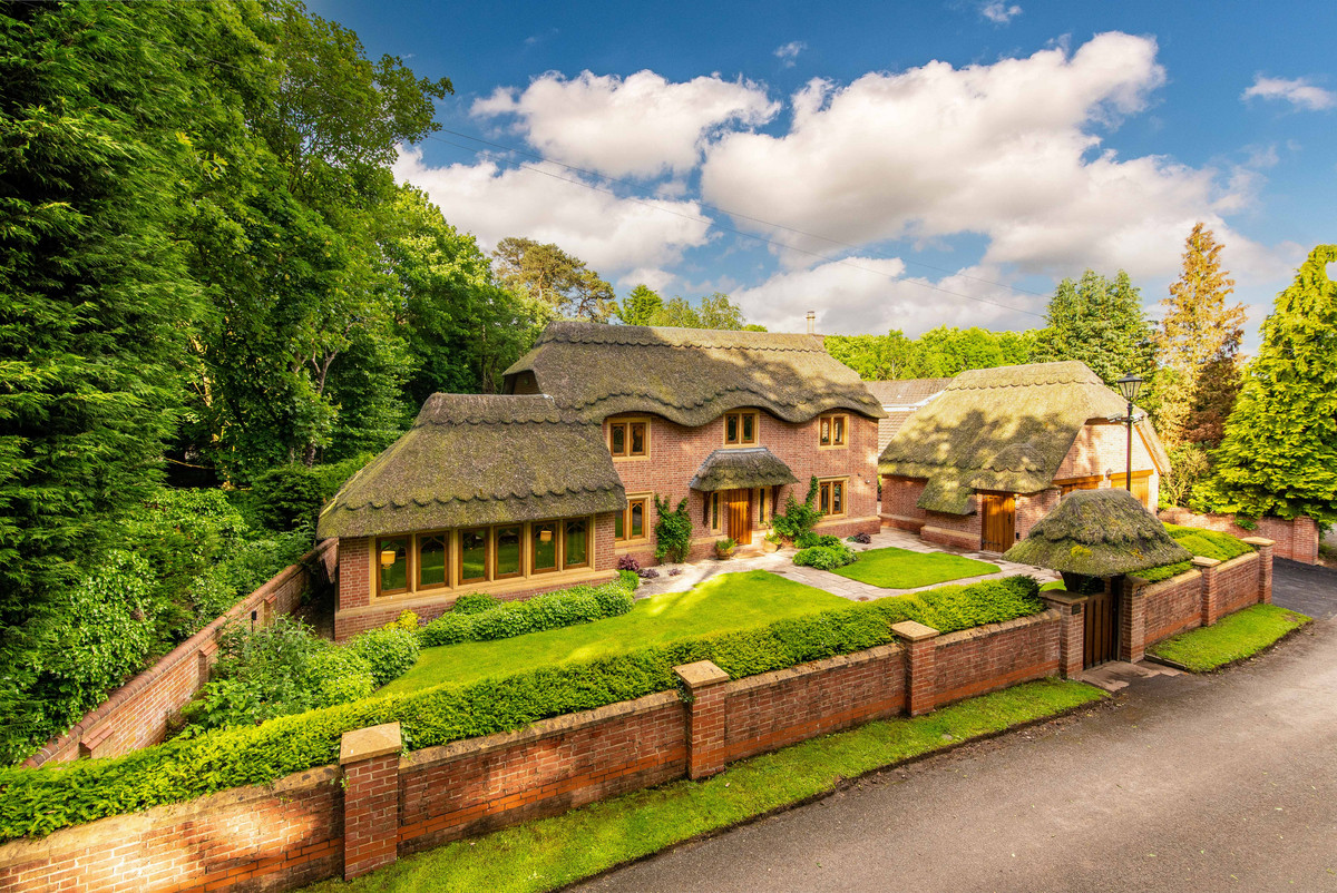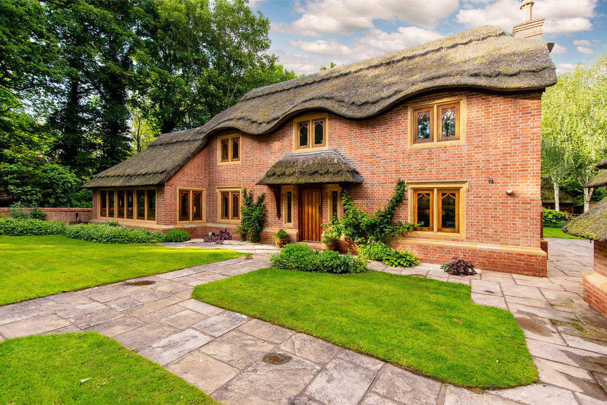 Approaching the property, one is met with the feature thatched lych-gate which opens into the fore garden having stone paved paths which lead to the entrance door with thatched canopy above. Furthermore, there is a driveway to the side providing off-street parking for two vehicles and access to the detached thatched double garage. To the rear of the property is a walled garden which features lawned areas, a large stone paved patio and a useful thatched garden store.