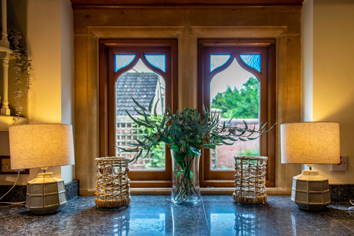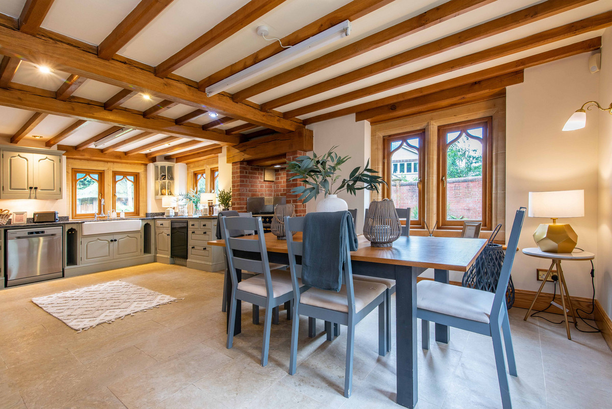 The entrance to the property impresses with its spacious reception hallway having exposed ceiling beams. There is a high degree of craftsmanship throughout this property, and this is evident in the handmade oak staircase with detailed carving that leads to the first floor and the stone window surrounds. The hallway grants access by three oak handmade doors featuring bespoke ironmongery furniture to a guest cloakroom, sitting room and dining kitchen.
