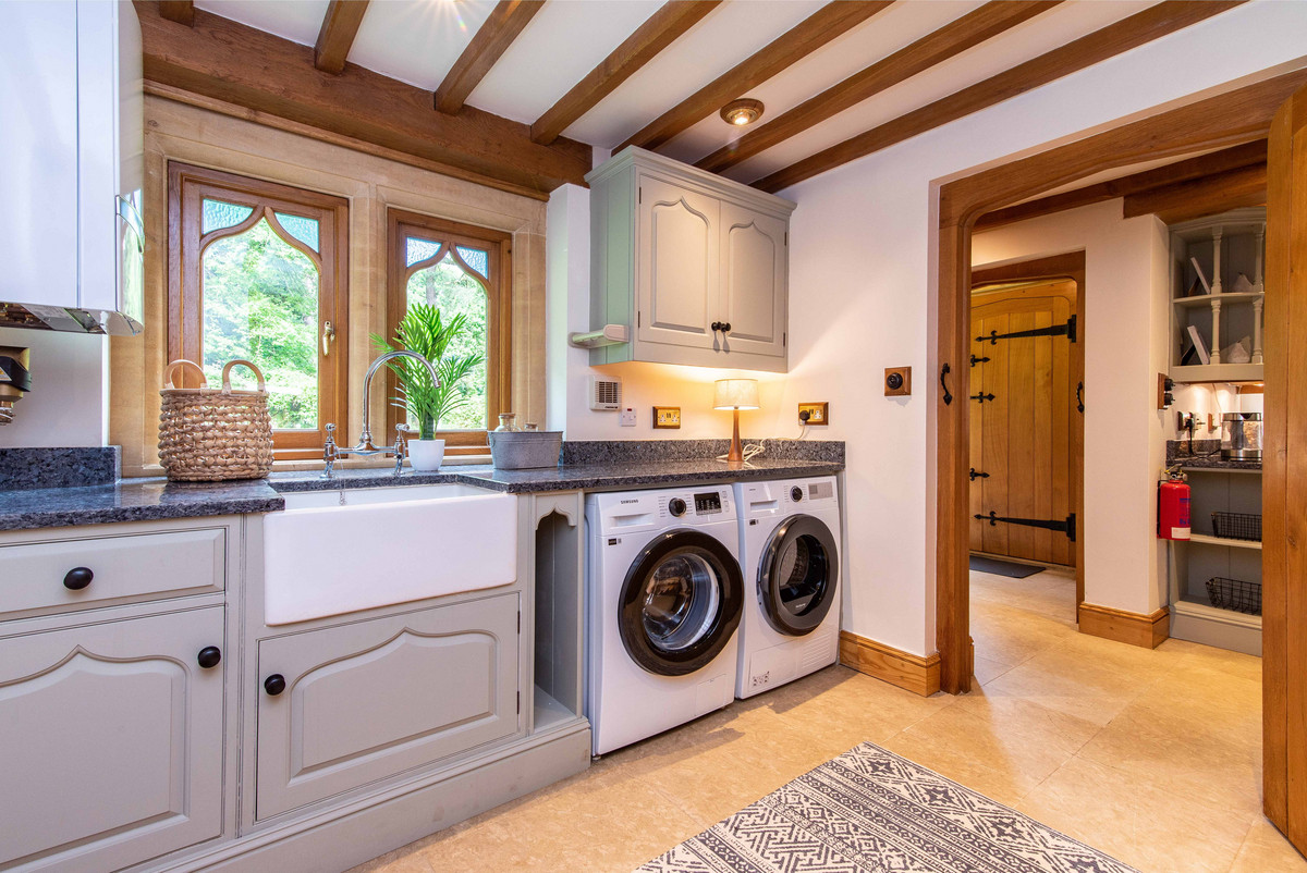 The dining kitchen is an excellent footprint, having an extensive range of granite preparation surfaces, handmade painted oak drawers & cupboards, ceramic butlers sink and Lacanche range cooker. Leading off the kitchen is a well-proportioned utility room and a feature rear porch/boot room - the utility room has handmade oak units, granite surface, butler sink and ample space for appliances. Finally, to the ground floor is the feature rear porch/boot room which overlooks and has a rear door leading to the garden, this area has the potential to also function as a study.