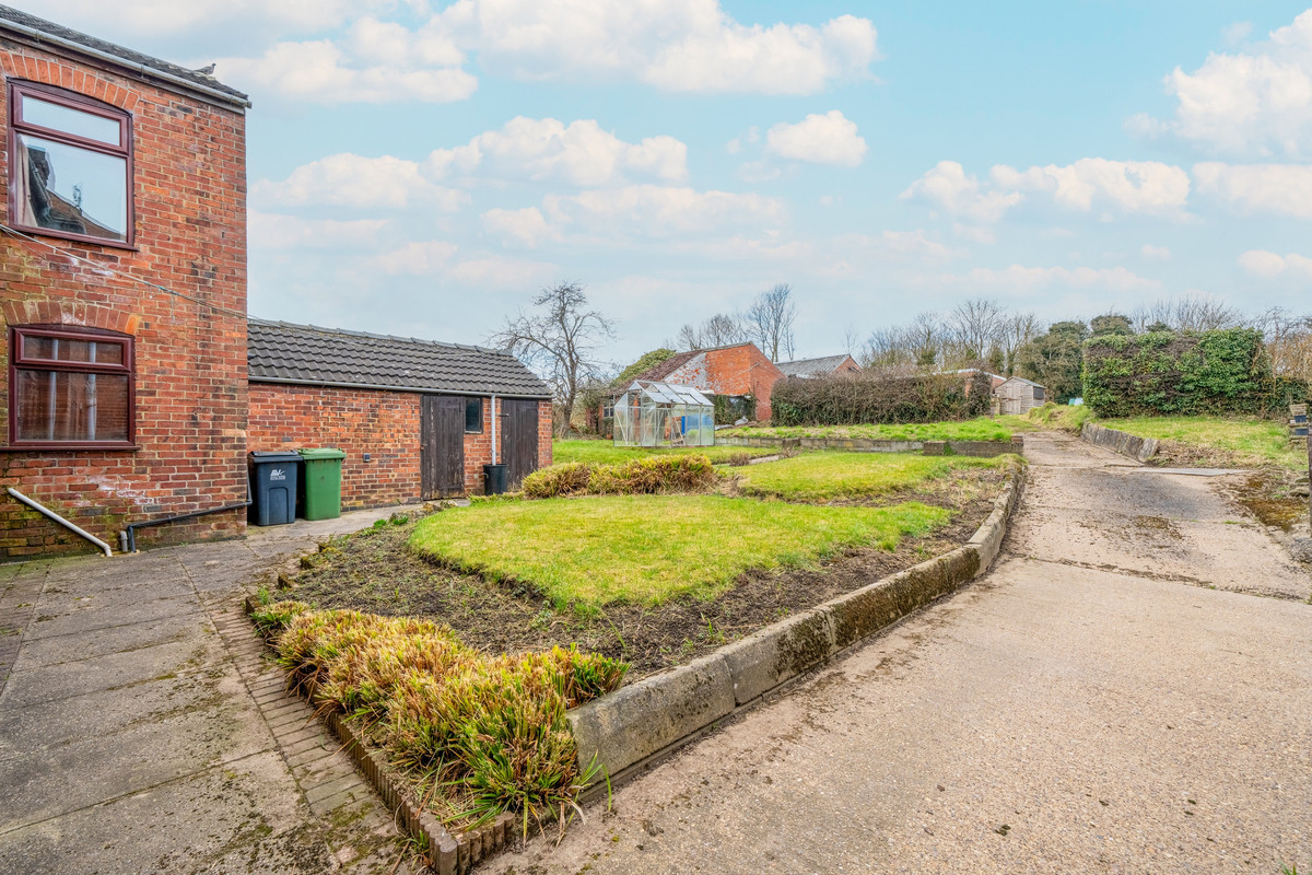A stone patio wraps around the back of the property and leads towards a large side garden which is mainly laid to lawn with mature shrub borders. Beyond this is a further grassy area with numerous brick outbuildings, including a double garage, workshop and potting sheds which could be converted for further flexible living accommodation or turned into equestrian stabling and paddock land, subject to planning and approval.