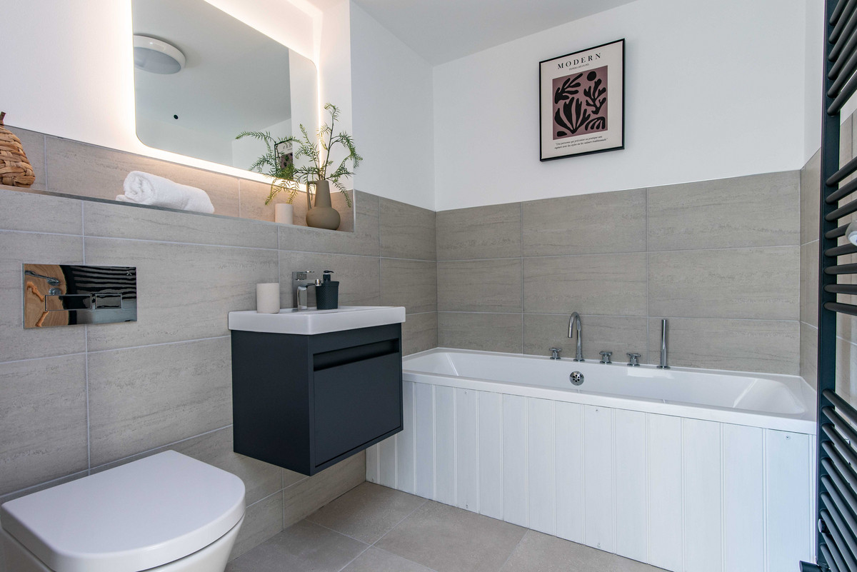All of the properties here benefit air source heating, coupled with underfloor heating to the ground floors and traditional radiators to the first floor levels where applicable. The bathrooms are fitted with high quality sanitary ware, alongside Porcelainosa tiles whilst the kitchens are of a sleek, contemporary design and are fitted with stone work surfaces and Neff appliances.