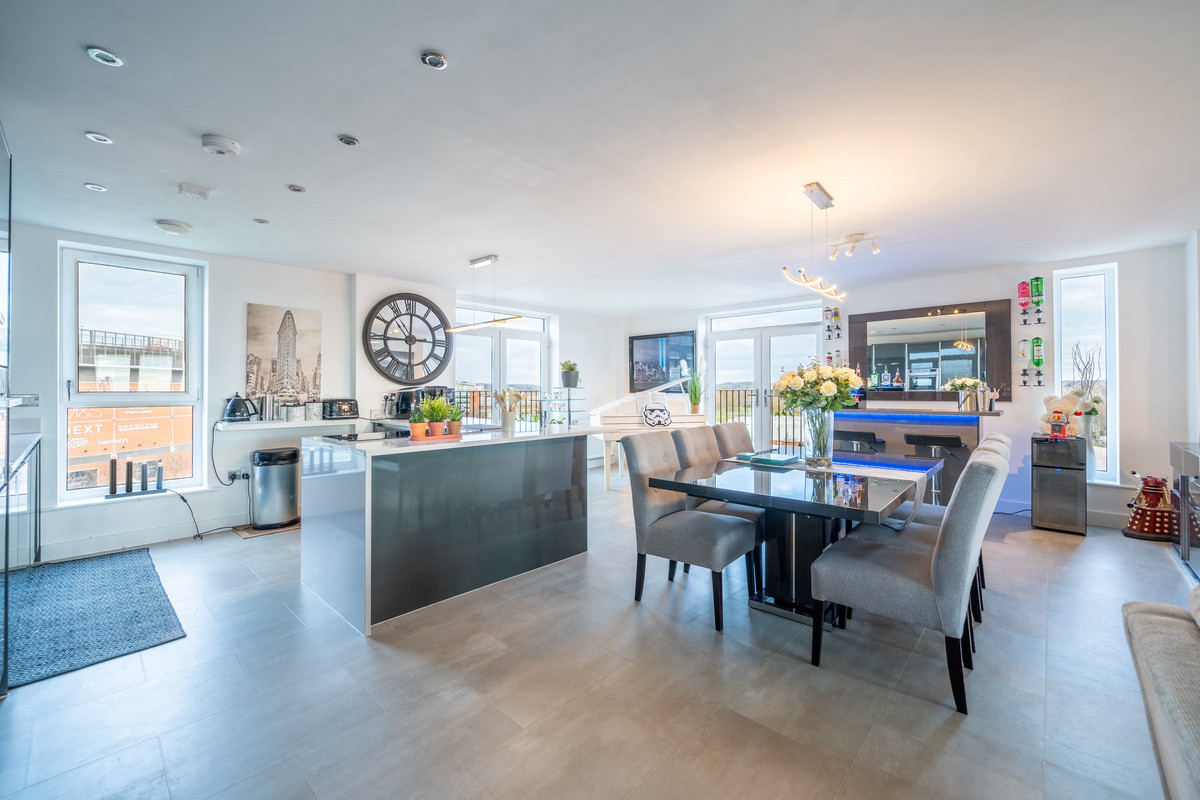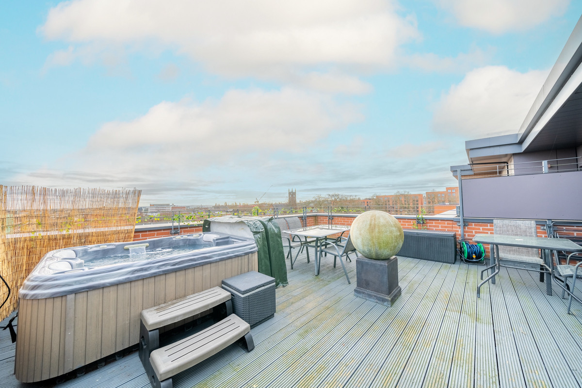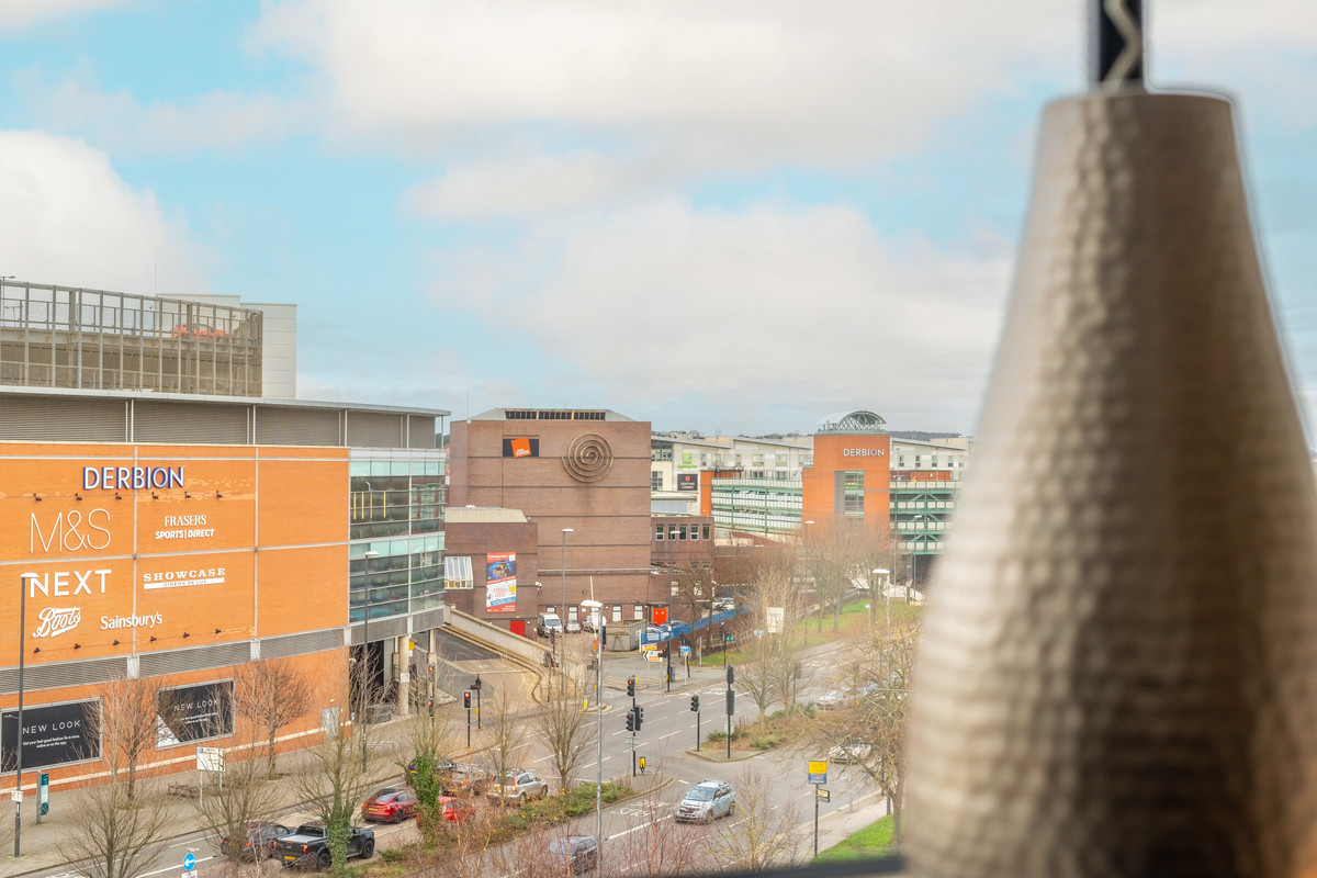 Outside: Experience the best of city living from the Penthouse’s expansive terrace, from here you get to enjoy the views of both the city and the picturesque countryside beyond. Located in Derby city centre, this Penthouse is the gateway to everything the city has to offer, blending luxury with unparalleled convenience. The Penthouse also comes with exclusive access from Hope Street to a secure garage below the Castleward Court, featuring two private parking spaces reserved solely for the residence, with direct access to the elevator to access the top floor.