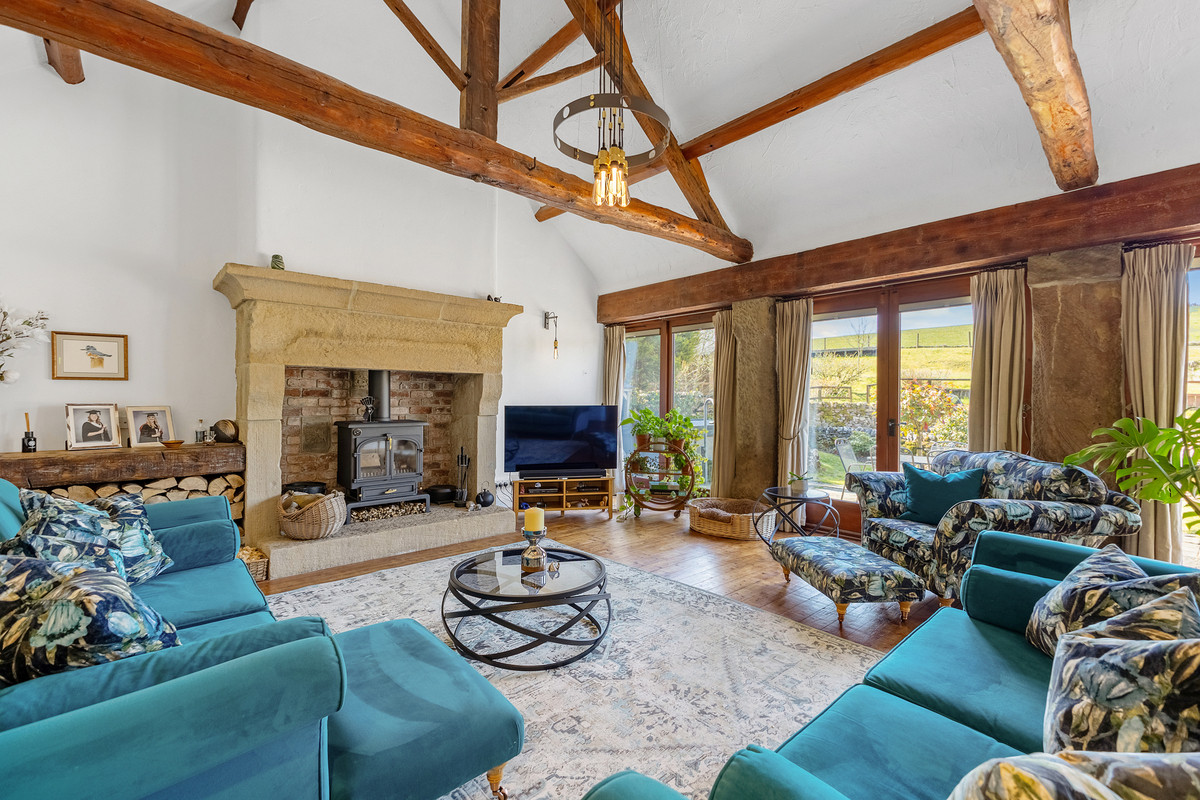 - Spacious lounge with vaulted ceiling and feature fireplace