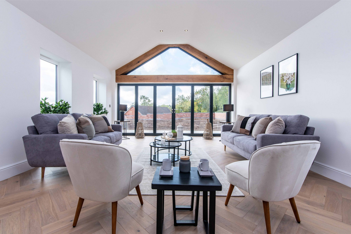 All of the properties here benefit air source heating, coupled with underfloor heating to the ground floors and traditional radiators to the first floor levels where applicable. There is either luxury vinyl tiled flooring to the ground floor areas or in the case of ‘The Stables’ there is oak engineered flooring. The bathrooms are fitted with high quality sanitary ware, alongside Porcelainosa tiles whilst the kitchens are of a sleek, contemporary design and are fitted with stone work surfaces and Neff appliances.