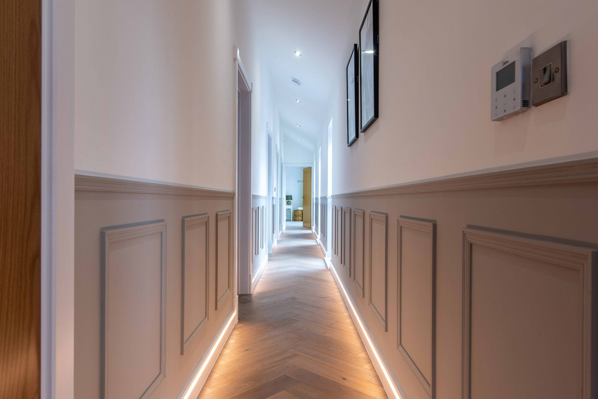 The Stables is a detached, four bedroom single storey dwelling, exceeding 1700sq ft of accommodation and is laid with herringbone engineered oak flooring throughout the living areas, with other notable features including the panelled hallway and floor to ceiling glazing in the sitting room.