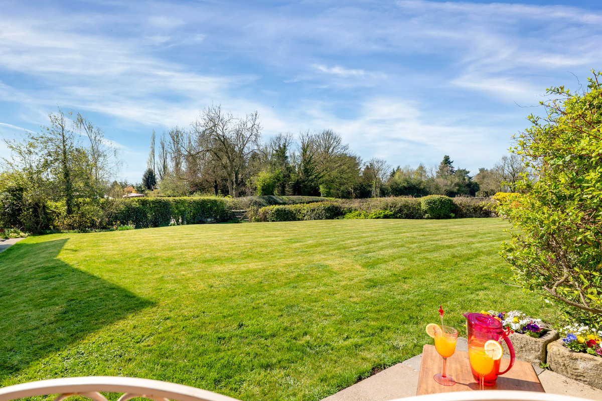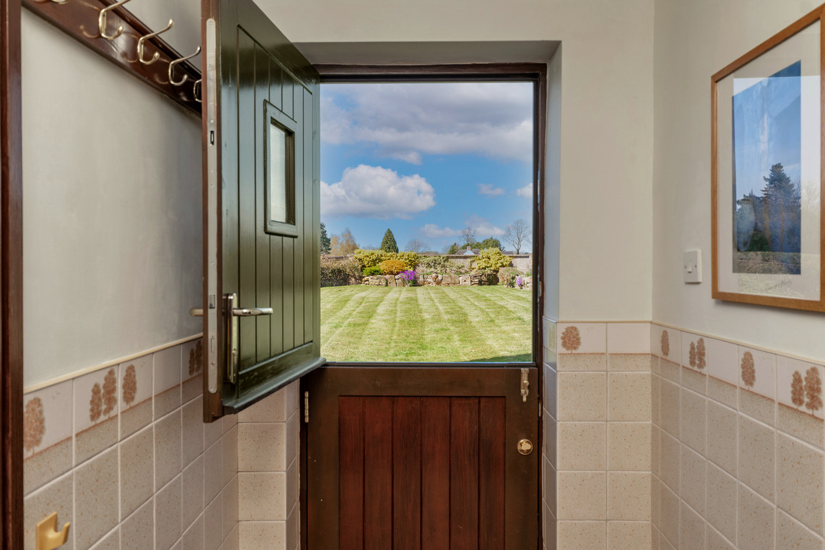Step into the generous reception hallway, where a staircase leads to the first floor and a useful under-stairs cupboard offers practical storage. A guest cloakroom adds everyday convenience, while a charming stable-style door off the hallway provides easy access to a beautifully landscaped side patio—perfect for alfresco dining or relaxing, with picturesque views of the village church. From the hallway, access a spacious dining room, a versatile study or family room, a bright sitting room, and a well-equipped breakfast kitchen.