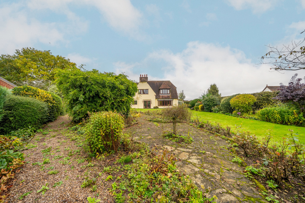 The property sits within a large, south-facing plot with hedging, mature trees, and established borders. To the side is a large block-paved parking area with a workshop, providing ample parking and storage options. The garden benefits from a spacious lawn, a lean-to greenhouse, and a patio area ideal for al fresco dining.