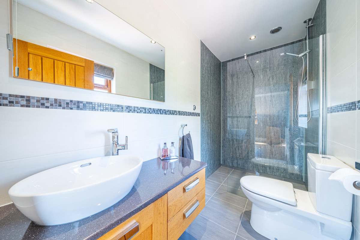 The family bathroom is the final room with again a walk-in shower a freestanding bath and is finished to an impeccable contemporary finish.