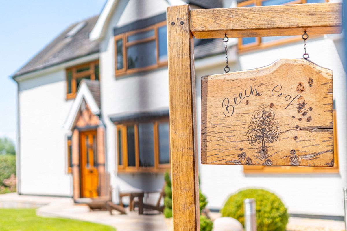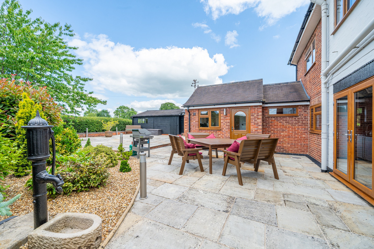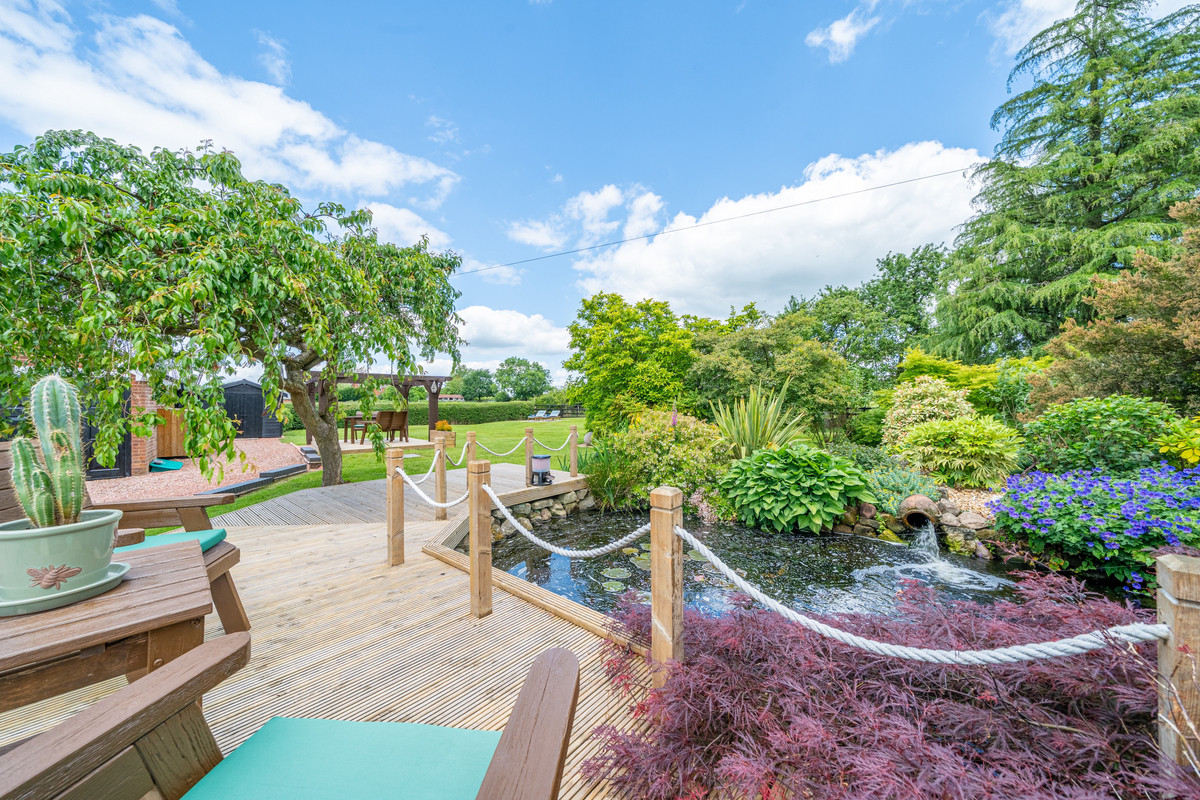 Approached via electric gates, the generous gravelled driveway leads to a detached double garage with a useful outbuilding (previously a workshop). The property is set within approximately 0.65 acres of beautifully landscaped grounds, which include an established koi carp pond, a rare 18th-century ornamental water pump, mature lawns, and multiple seating areas. The gardens feature an array of mature trees and, offer extreme privacy and are a great size for family life. The outbuilding offers fantastic potential as a home office, gym, games room or even a bar—ideal for those who love entertaining or working from home. This can be accessed from double doors that lead into the garage or via its own entrance from the Courtyard garden area. This courtyard gets the evening sunshine, again perfect for entertaining and those summer BBQs. The orientation of Beech Croft makes the most of the sunrise, sunset, and peaceful and tranquil surroundings.